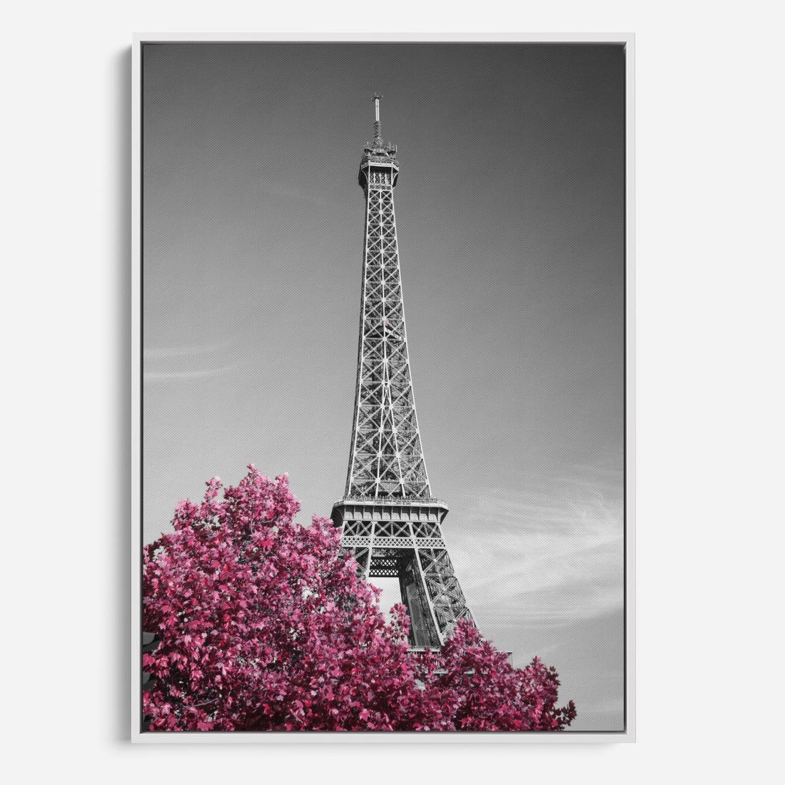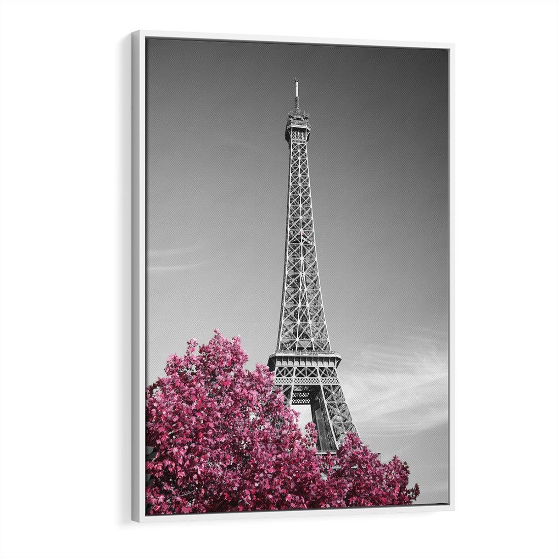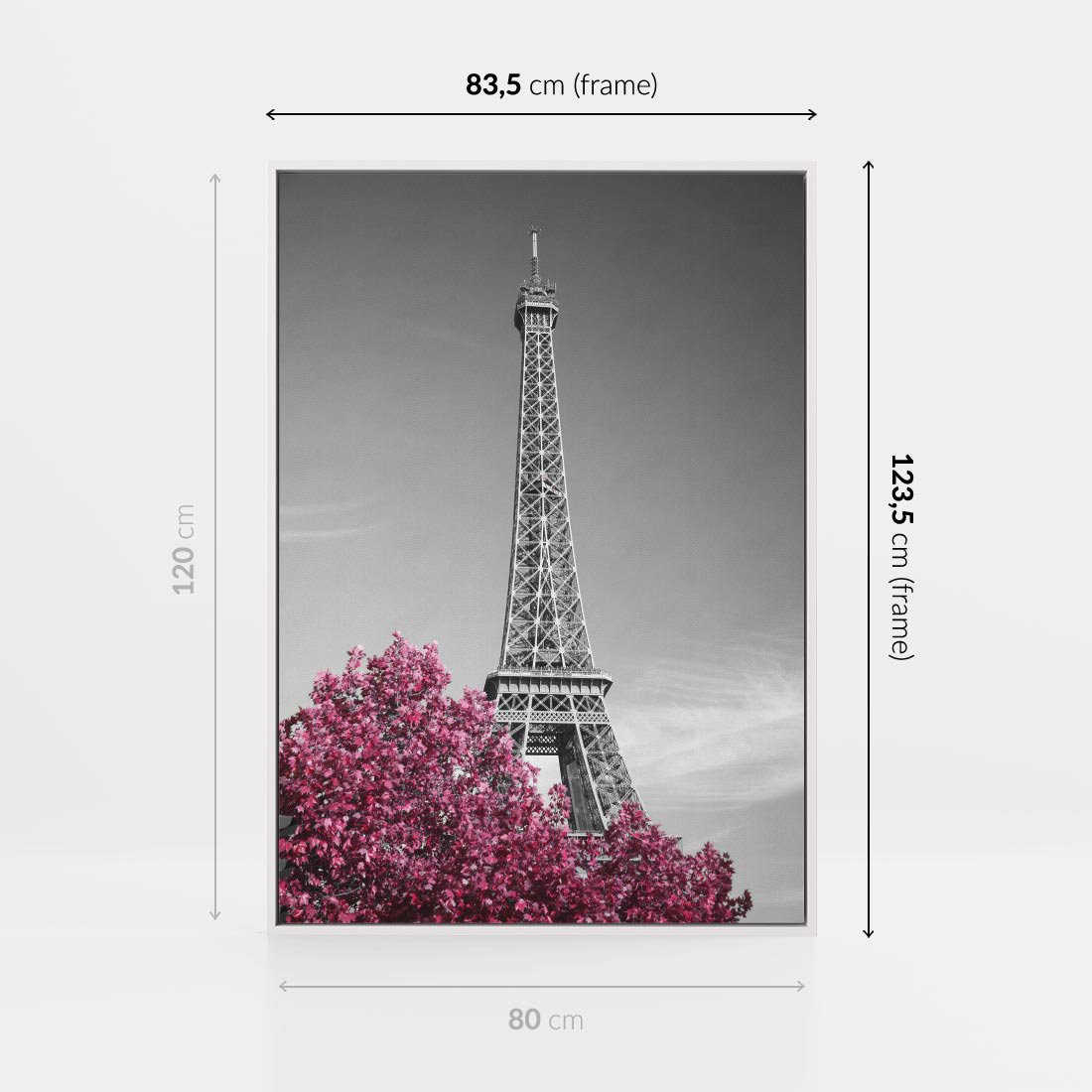 Obraz w ramie 80x120 - Różowy Paryż - czarno białe zdjęcie, wieża eiffla - rama biała