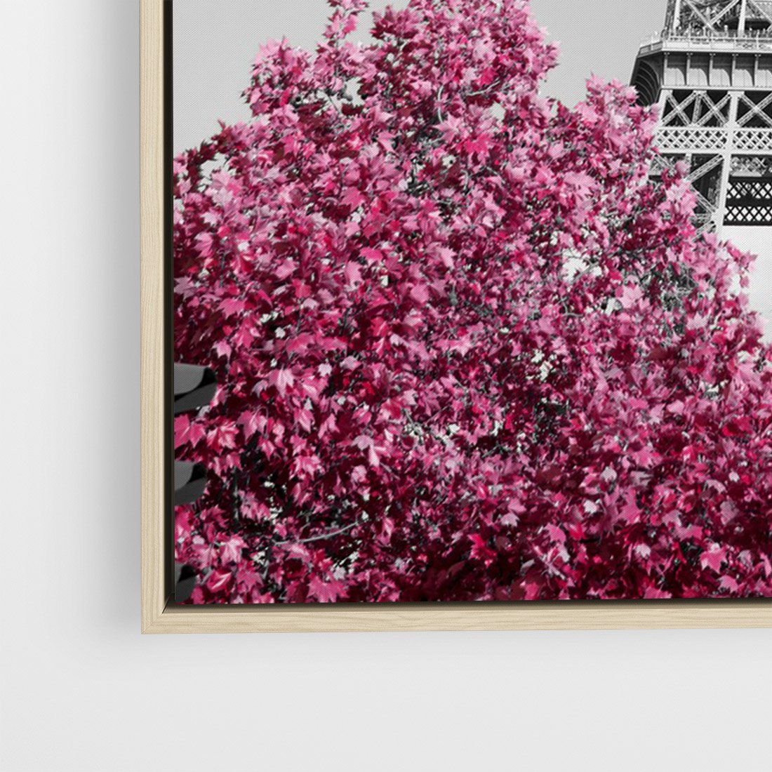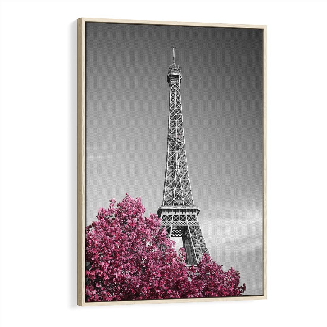 Obraz w ramie 80x120 - Różowy Paryż - czarno białe zdjęcie, wieża eiffla - rama drewno