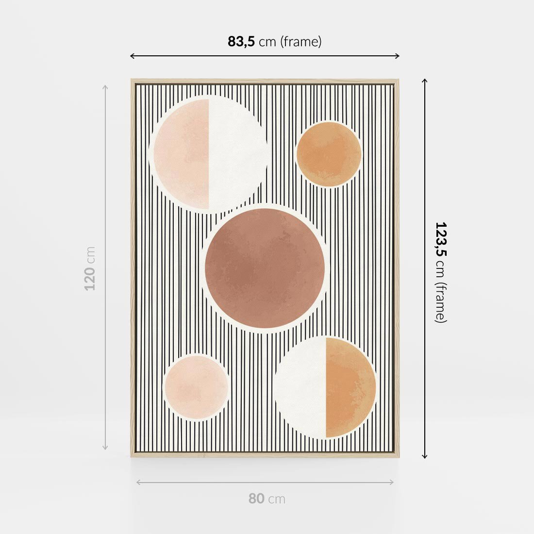 Ta nowoczesna abstrakcja łączy w sobie formy koł i okręgów, przy użyciu szkicowanych linii. Doskonale wpisuje się w minimalistyczne wnętrza, dodając im wyjątkowego charakteru i stylu.
