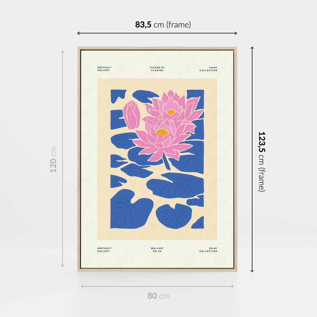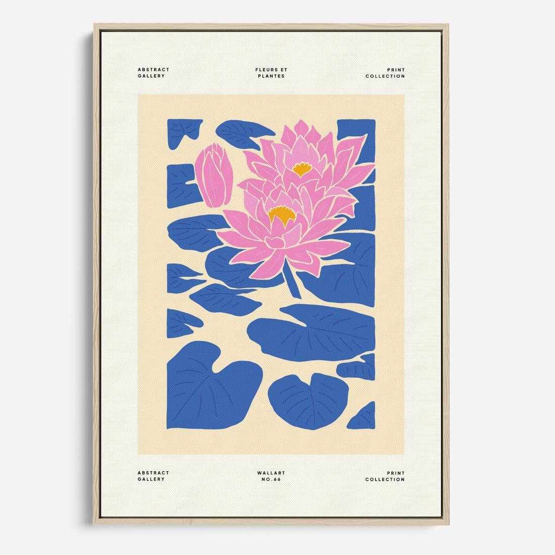 Ten nowoczesny plakat ukazuje pastelowe lilie wodne w odcieniach błękitu i różu, tworząc spokojny i oniryczny obraz. Sztuka ta jest idealnym dodatkiem do sypialni, tworząc atmosferę sennej harmonii i piękna natury.