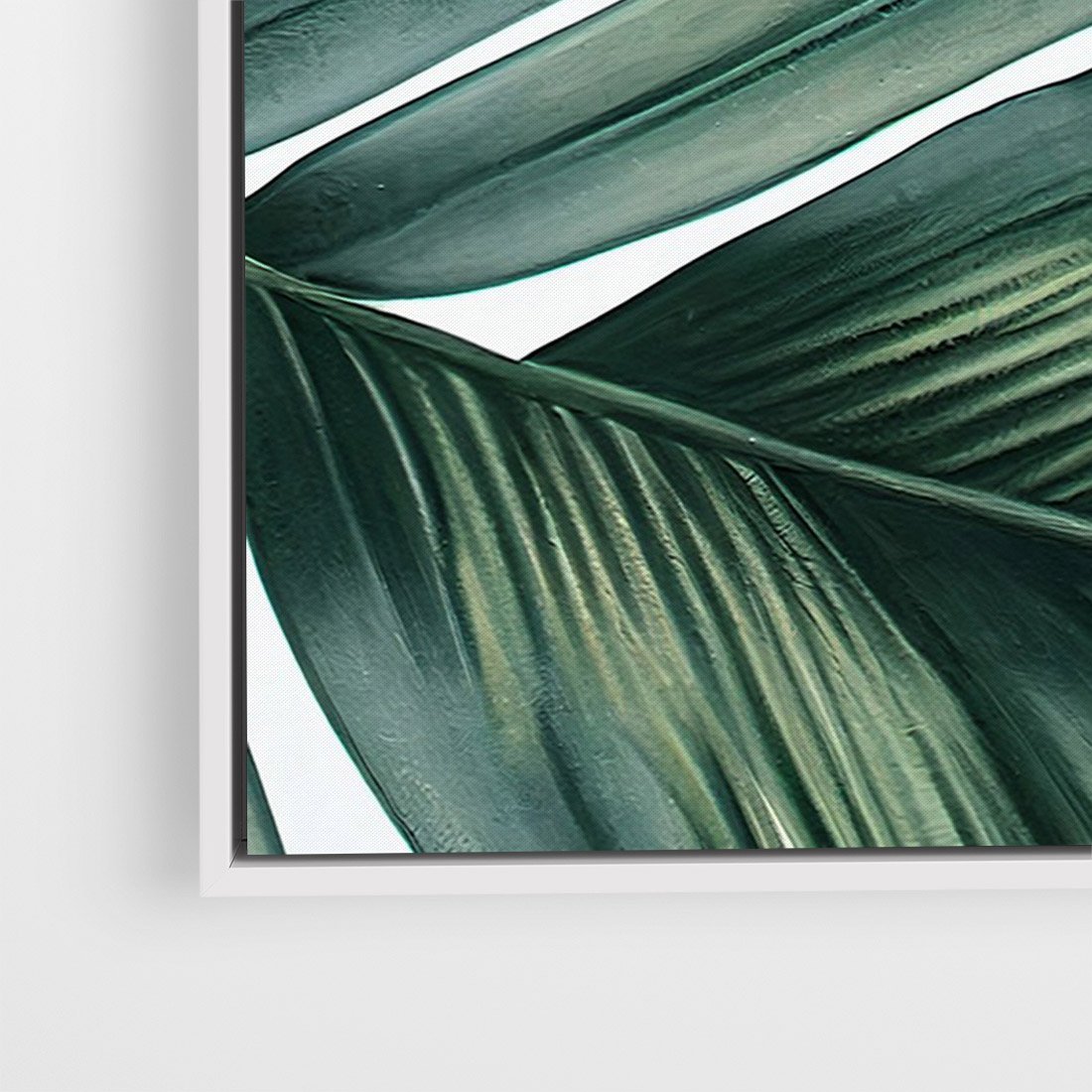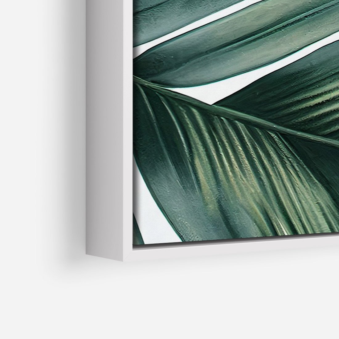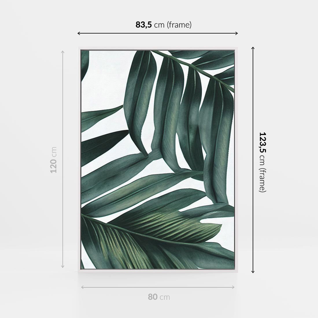 Obraz w ramie 80x120 - Ruchome liście czasu - liście palmy, tropikalne - rama biała