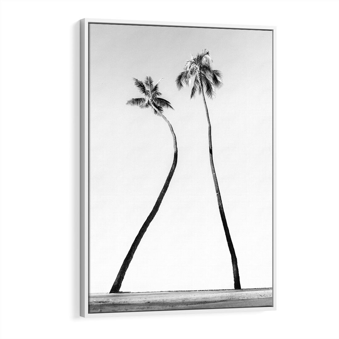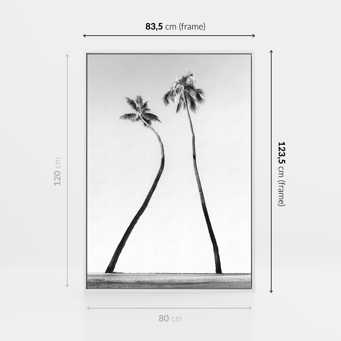 Obraz w ramie 80x120 - Samotne Palmy - czarno biała fotografia, dwie samotne palmy - rama biała