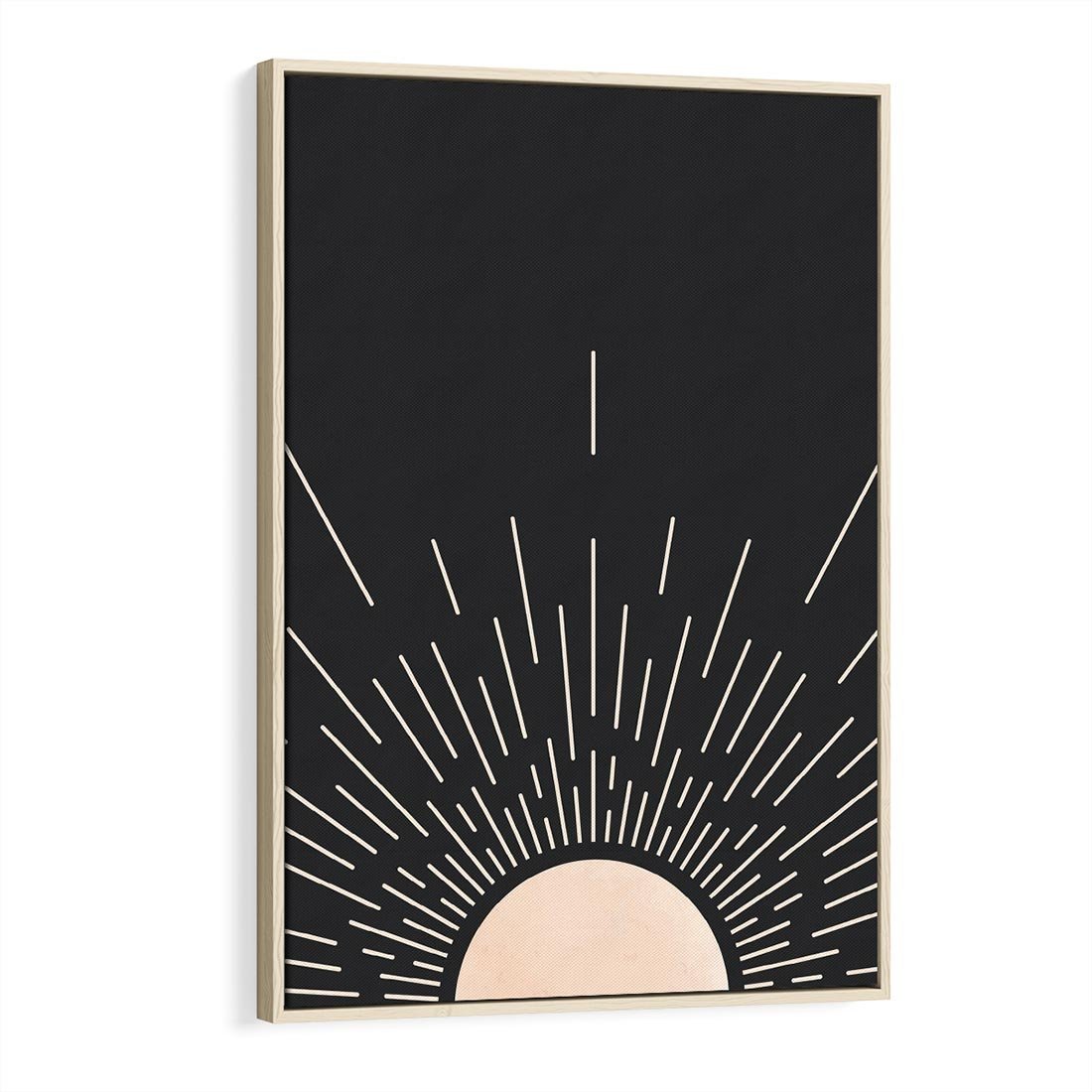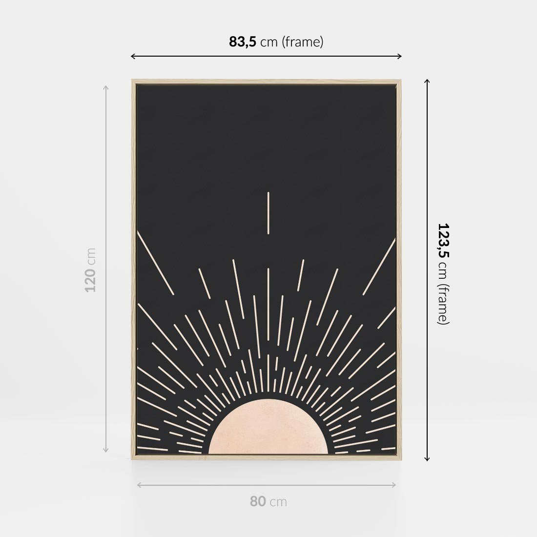 Obraz w ramie 80x120 - Słoneczny Portret Duszy - boho czarne słońce, nowoczesna grafika - rama drewno