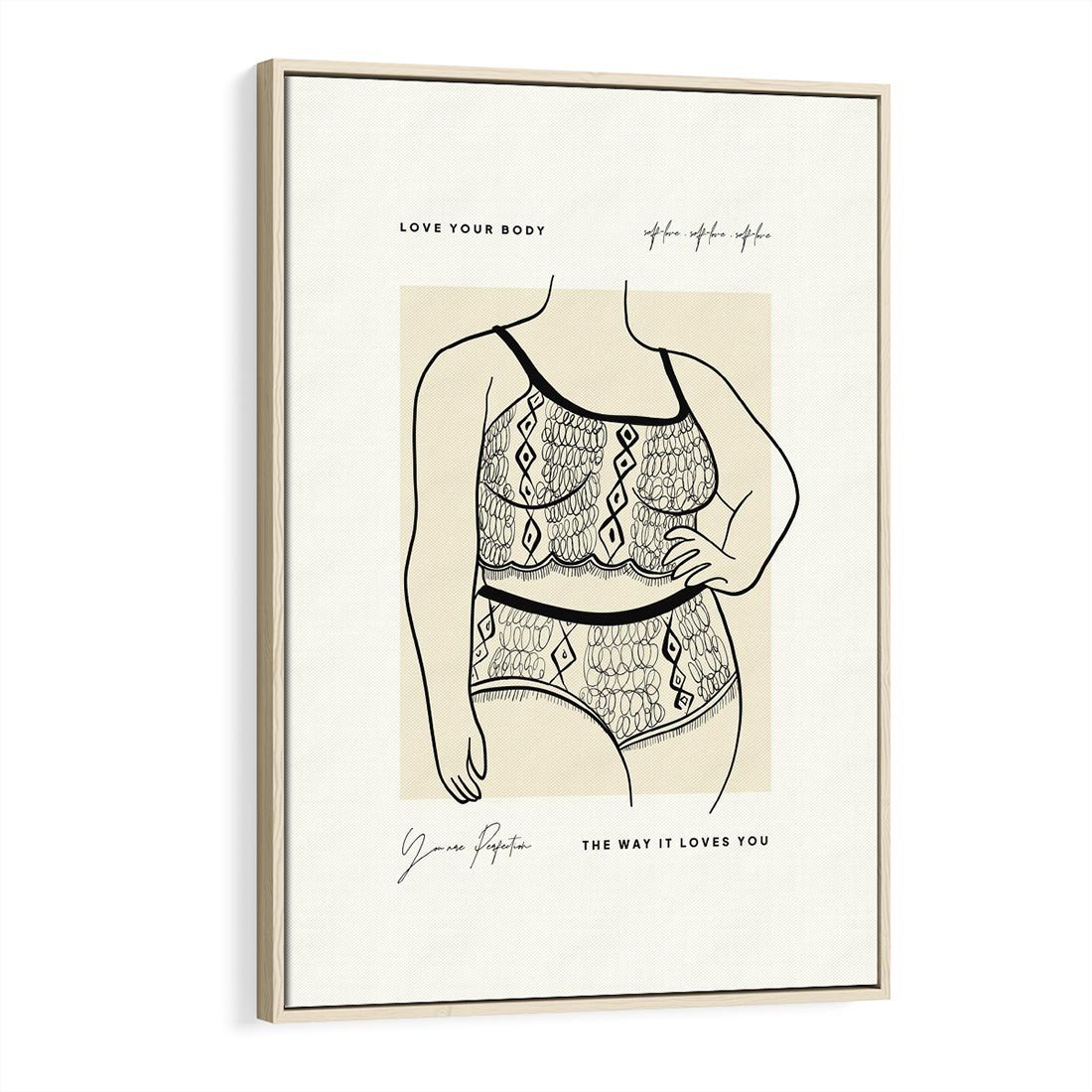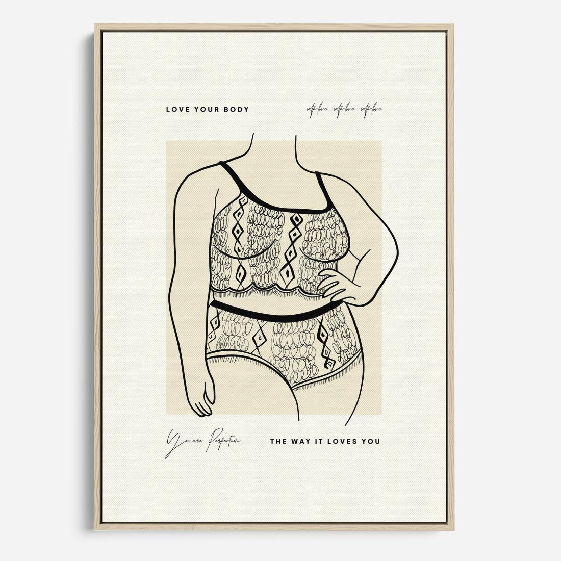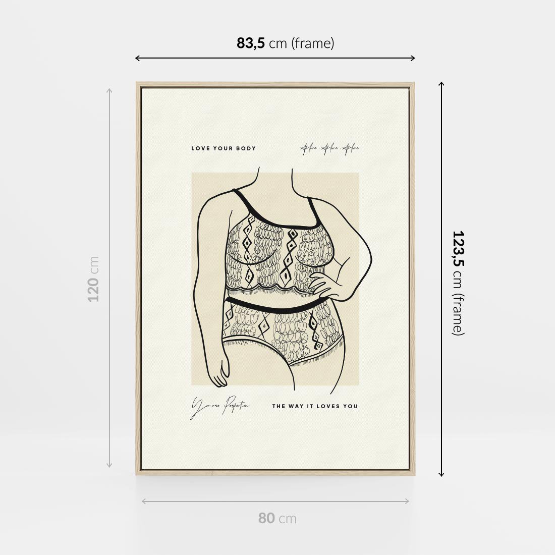 Ten plakat to hołd dla kobiecej siły i piękna. Delikatny rysunek kobiety w bieliźnie, wzbogacony subtelnie dobraną typografią, tworzy wyjątkową kompozycję, oddającą piękno i pewność siebie.