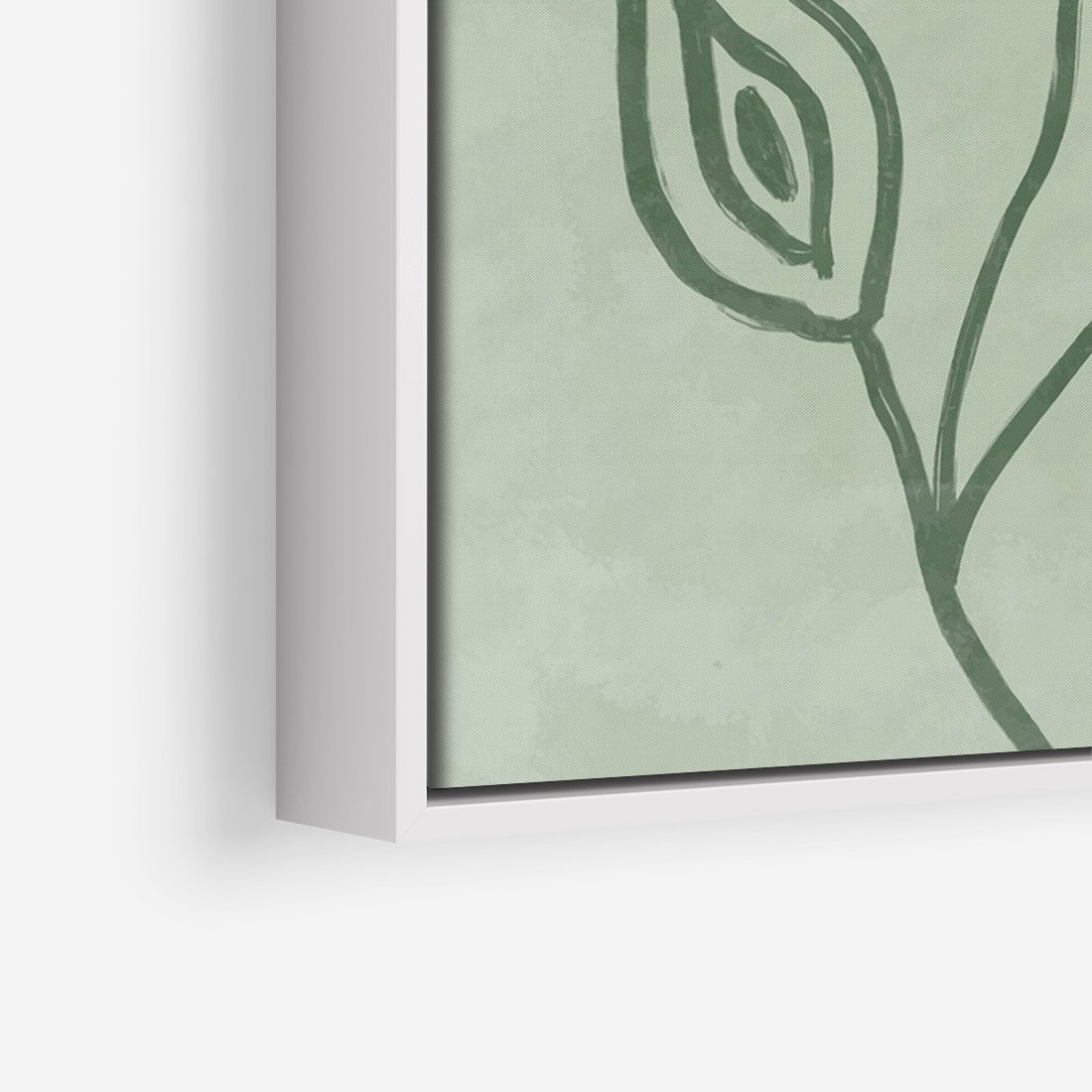 Obraz w ramie 80x120 - Szmaragdowy Oddech - abstrakcyjne delikatne zielone linie, podobne do gałęzi kwiatów - rama biała