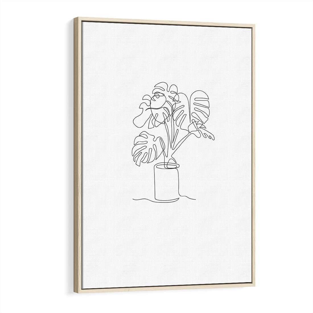 Obraz w ramie 80x120 - Tajemnicza Harmonia - sztuka one line, monstera - rama drewno