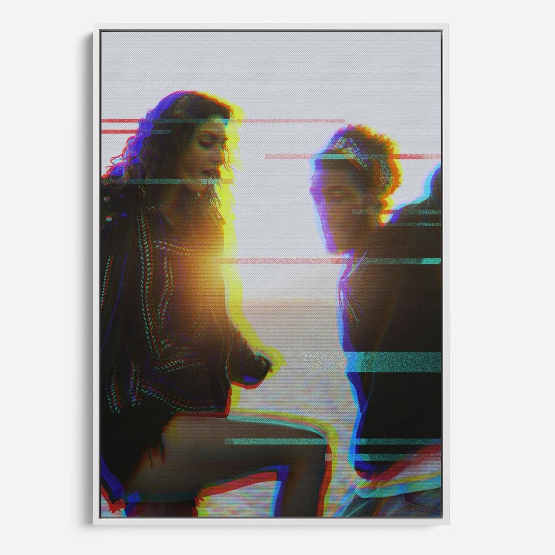 Obraz w ramie 80x120 - Taniec tęsknot - zdjęcie w stylu retro, dodane kolorowe akcenty - rama biała