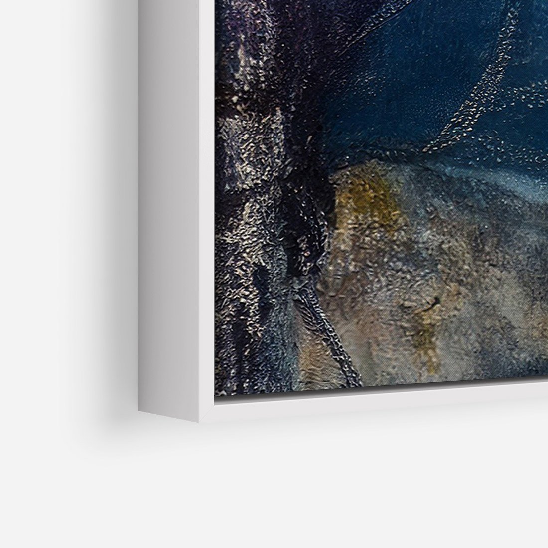 Obraz w ramie 80x120 - Tekstura Kwiatu - olejny obraz, niebieski kwiat - rama biała