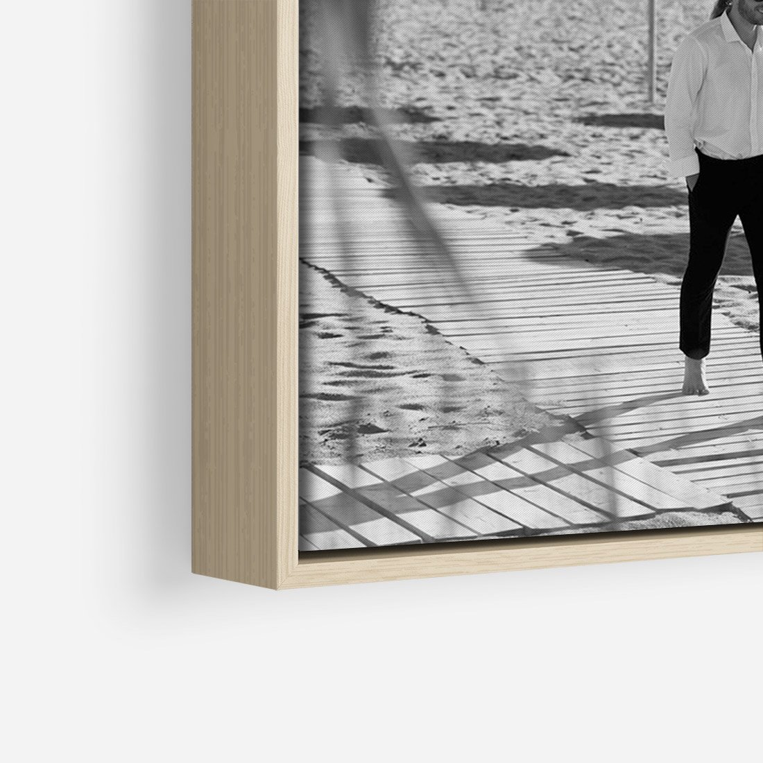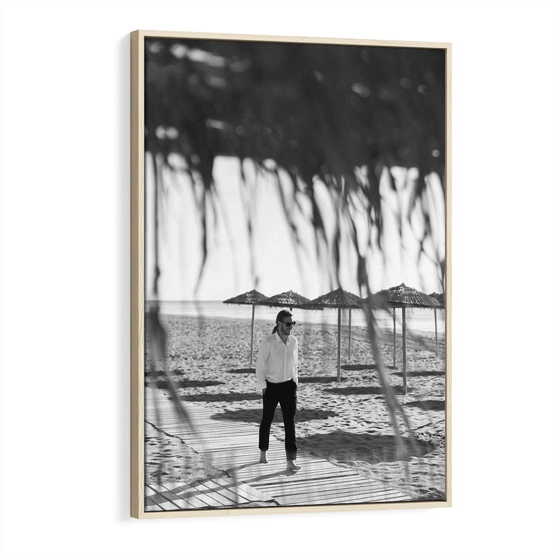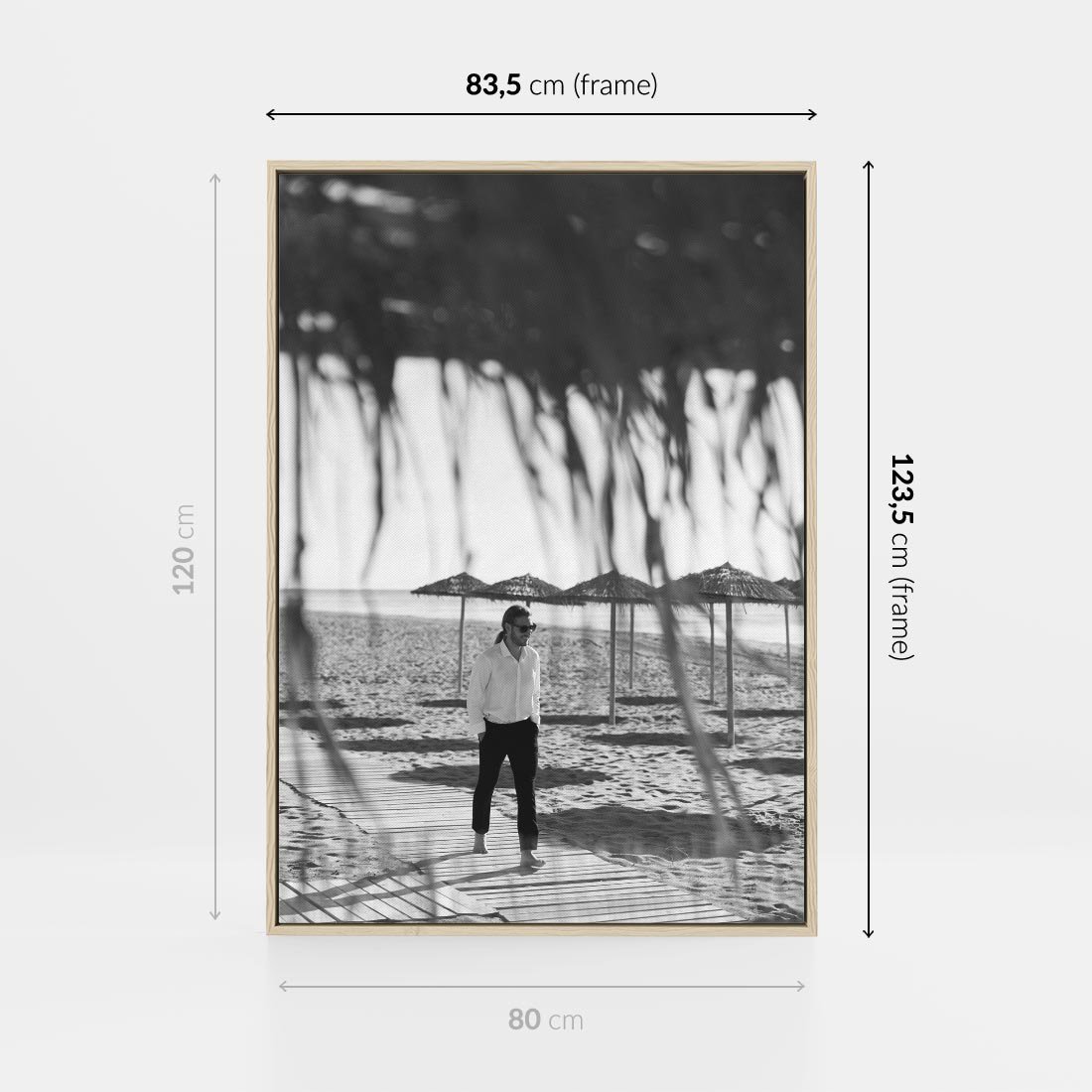 Obraz w ramie 80x120 - Wakacyjny Spacer - czarno białe zdjecie, plaża - rama drewno