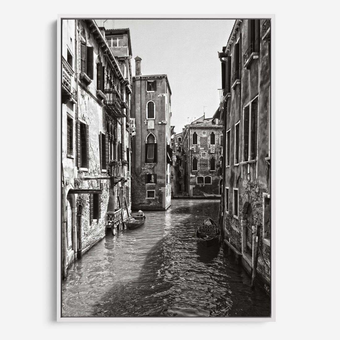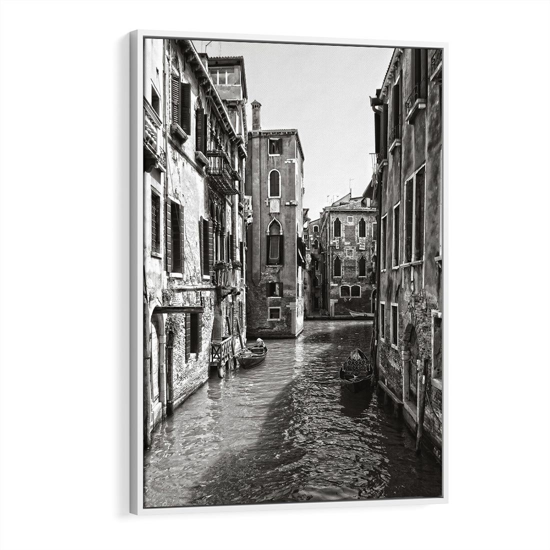 Obraz w ramie 80x120 - Weneckie Kanały - czarno białe zdjęcie, wenecja - rama biała