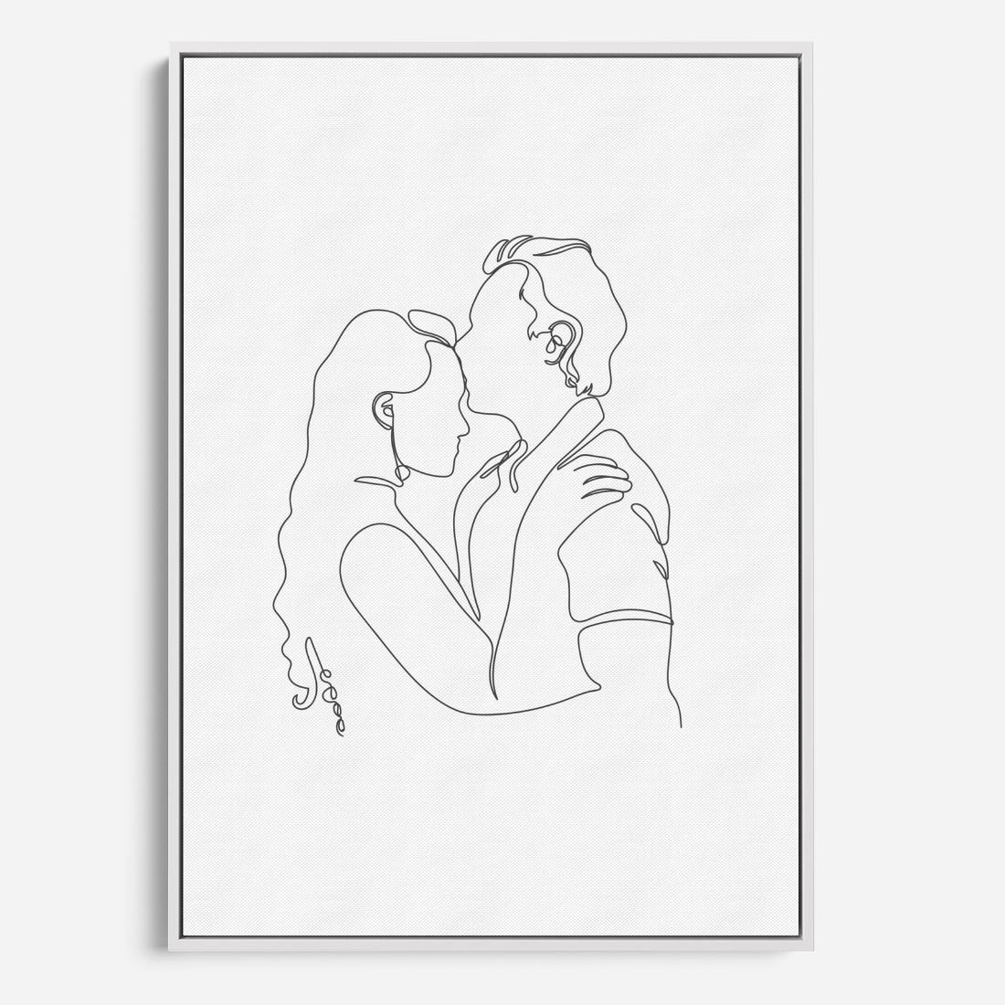 Naszkicowana jedną linią para zakochanych - kobieta i mężczyzna - symbolizuje ich połączenie i bliskość w minimalistyczny sposób.