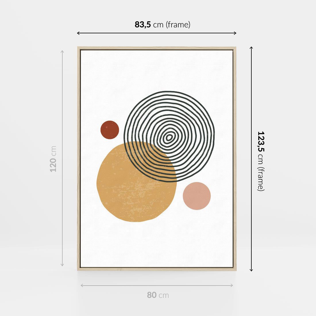 Obraz w ramie 80x120 - Wewnętrzne Formy - koła okręgi, abstrakcyjna nowoczesna sztuka - rama drewno