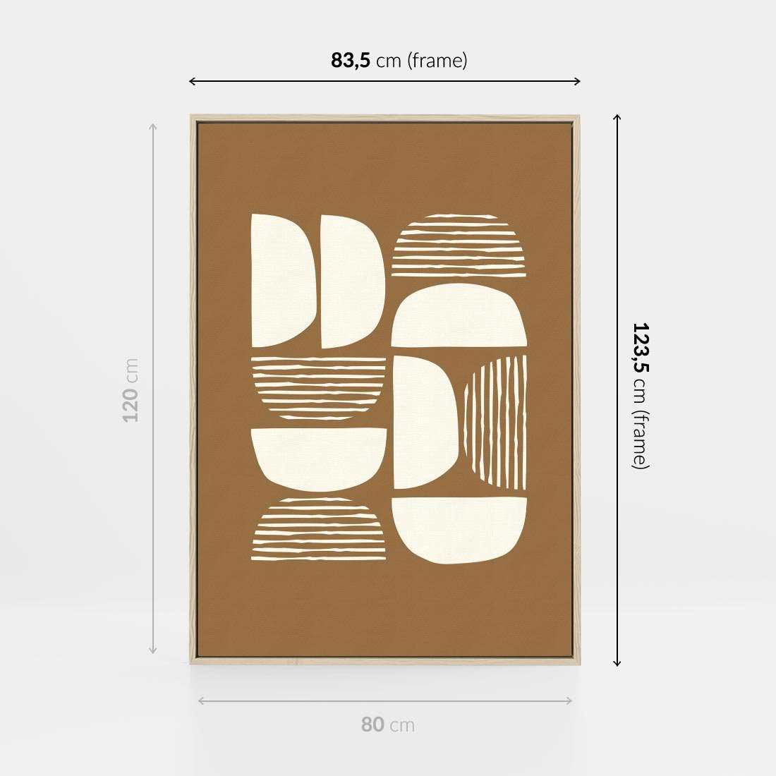 Obraz w ramie 80x120 - Wewnętrzne Spektrum - geometryczne boho kształty na brązowym, karmelowym tle - rama drewno
