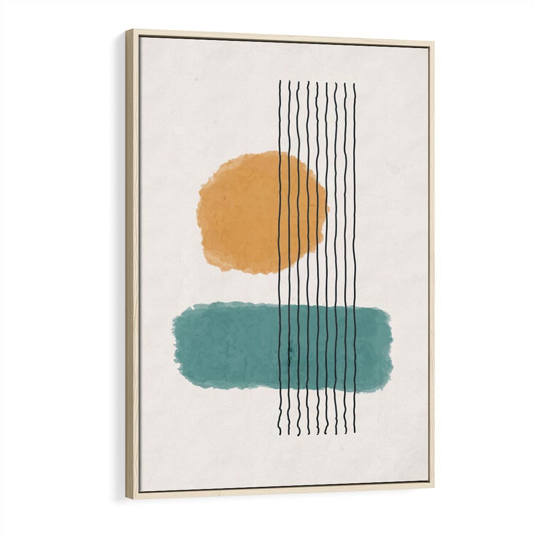 Twórczy plakat przedstawia abstrakcyjne akwarelowe plamy w odważnych odcieniach turkusu i żółtego, zdobiące się nieregularnymi kreskami i dynamicznymi liniami. Minimalizm w nowoczesnej sztuce.