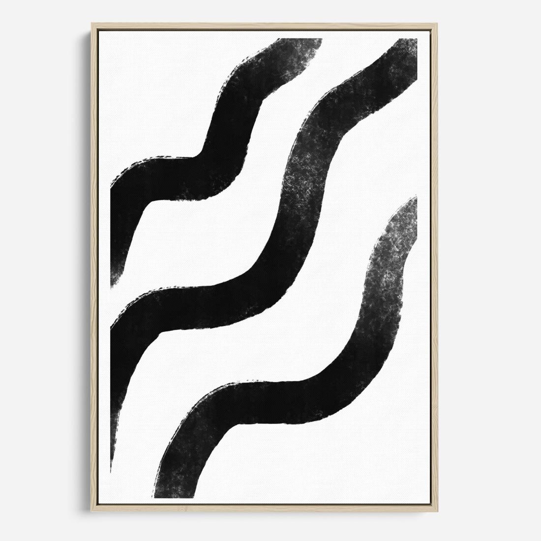 Ten minimalistyczny obraz abstrakcyjny w stylu modern art charakteryzuje się czarnymi falującymi liniami, które tworzą dynamiczną i wyrazistą kompozycję. To dzieło sztuki doskonale oddaje ducha nowoczesności i minimalizmu, nadając się idealnie do współczesnych wnętrz.