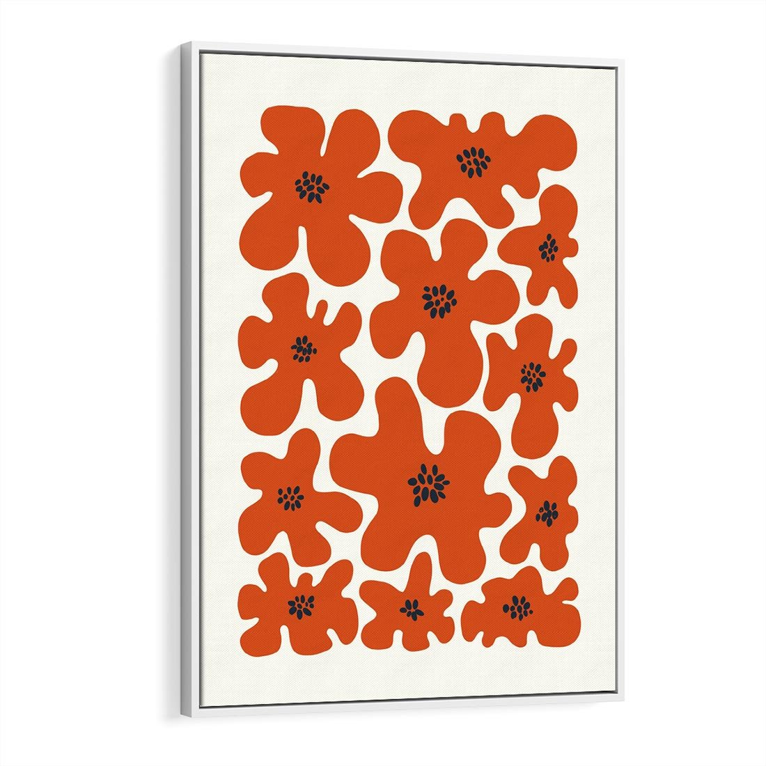 Ten nowoczesny plakat przedstawia abstrakcyjne czerwone kwiaty w unikalnej kompozycji. Sztuka ta bawi się formą i kolorem, tworząc dynamiczną wizję natury w nowoczesnym wydaniu.