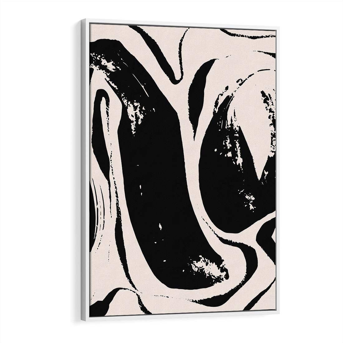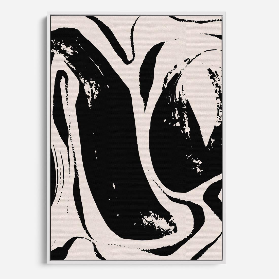 Obraz w ramie 80x120 - Wibracje w ciemnościach duszy - czarno biała abstrakcja, nieregularne rozmyte linie - rama biała
