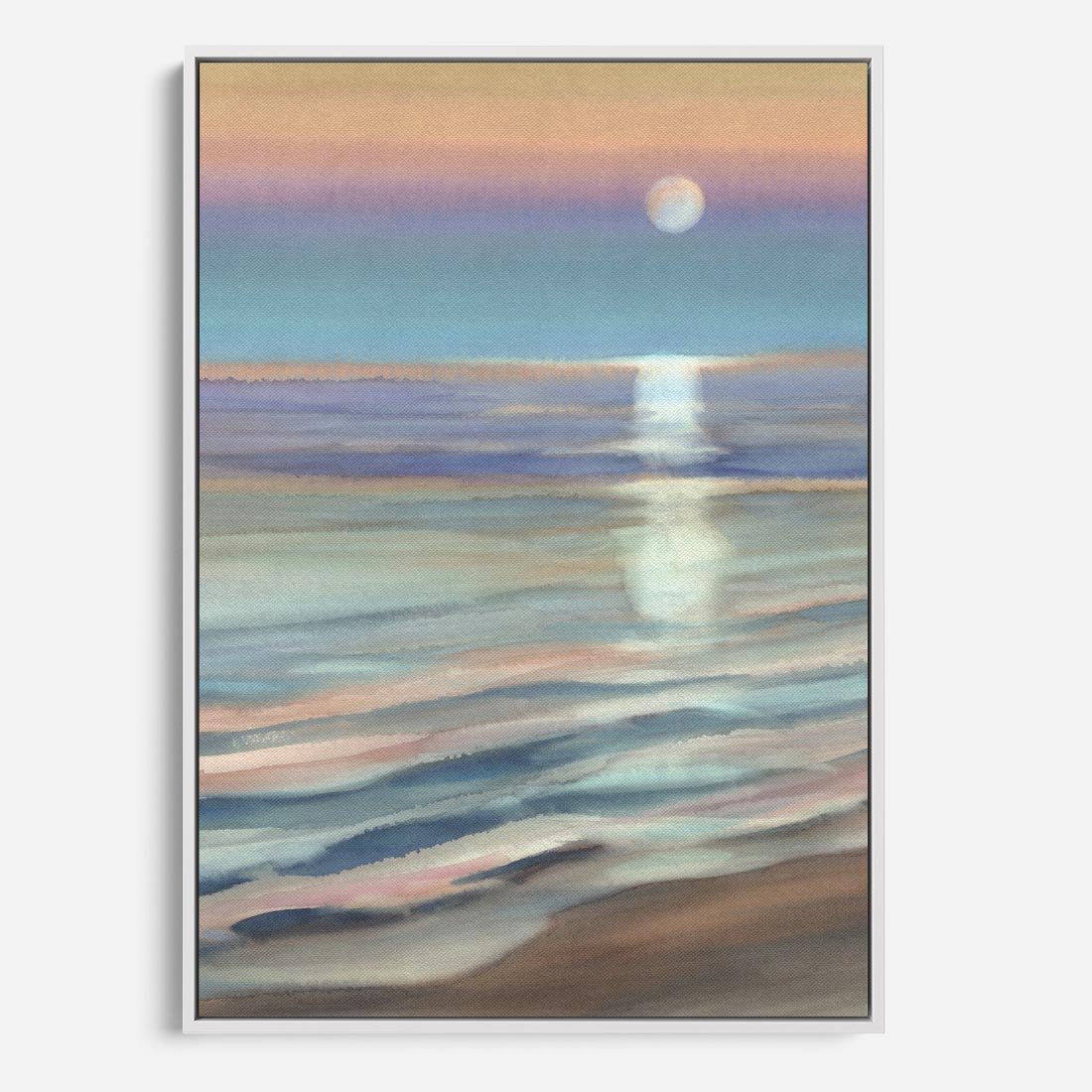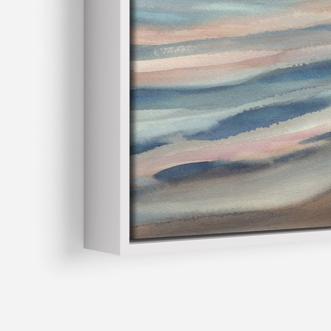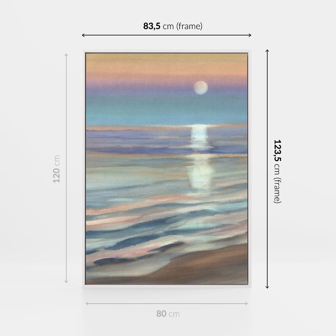 Obraz w ramie 80x120 - Witraże roziskrzonych myśli - akwarela, zamglony wschód słońca - rama biała