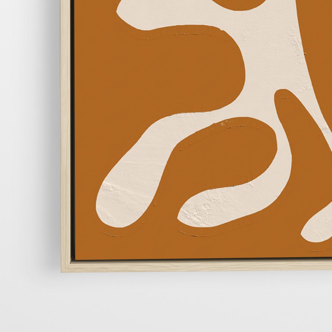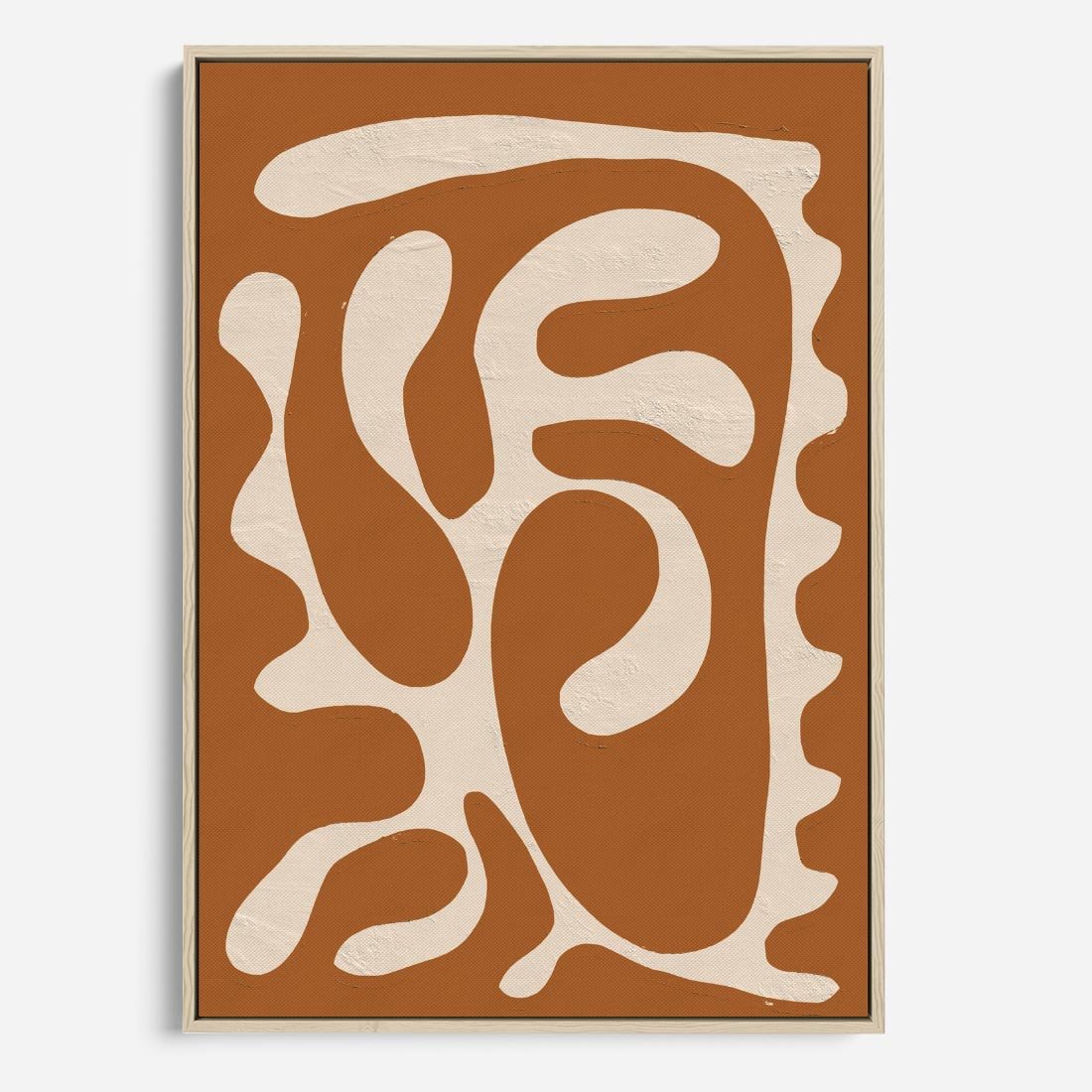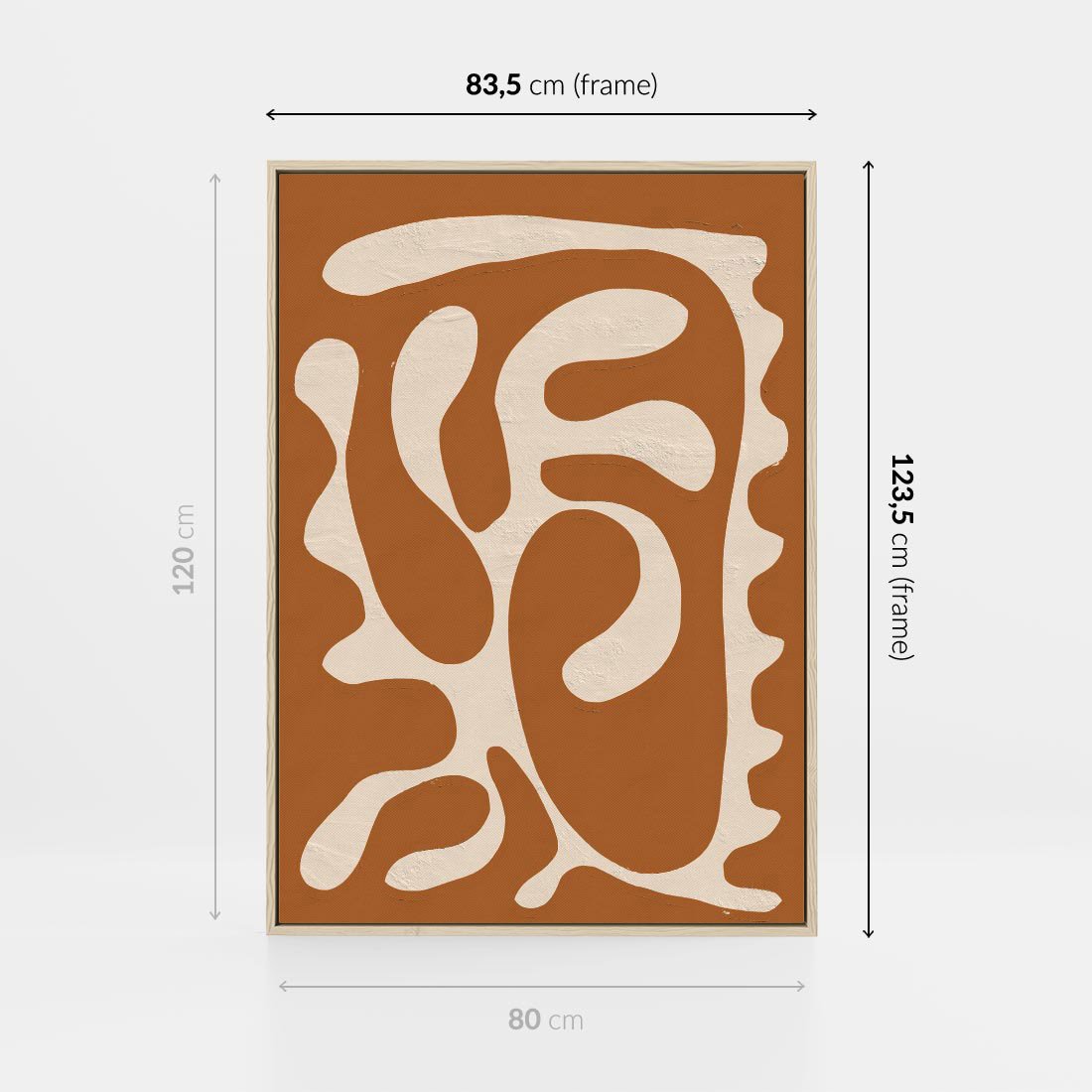 Ten abstrakcyjny obraz w formie plakatu prezentuje fascynujące i dziwne kształty, które kontrastują z ciepłym brązowym tłem. Kompozycja ta tworzy unikalną wizję sztuki abstrakcyjnej, pobudzając wyobraźnię i zachęcając do interpretacji.