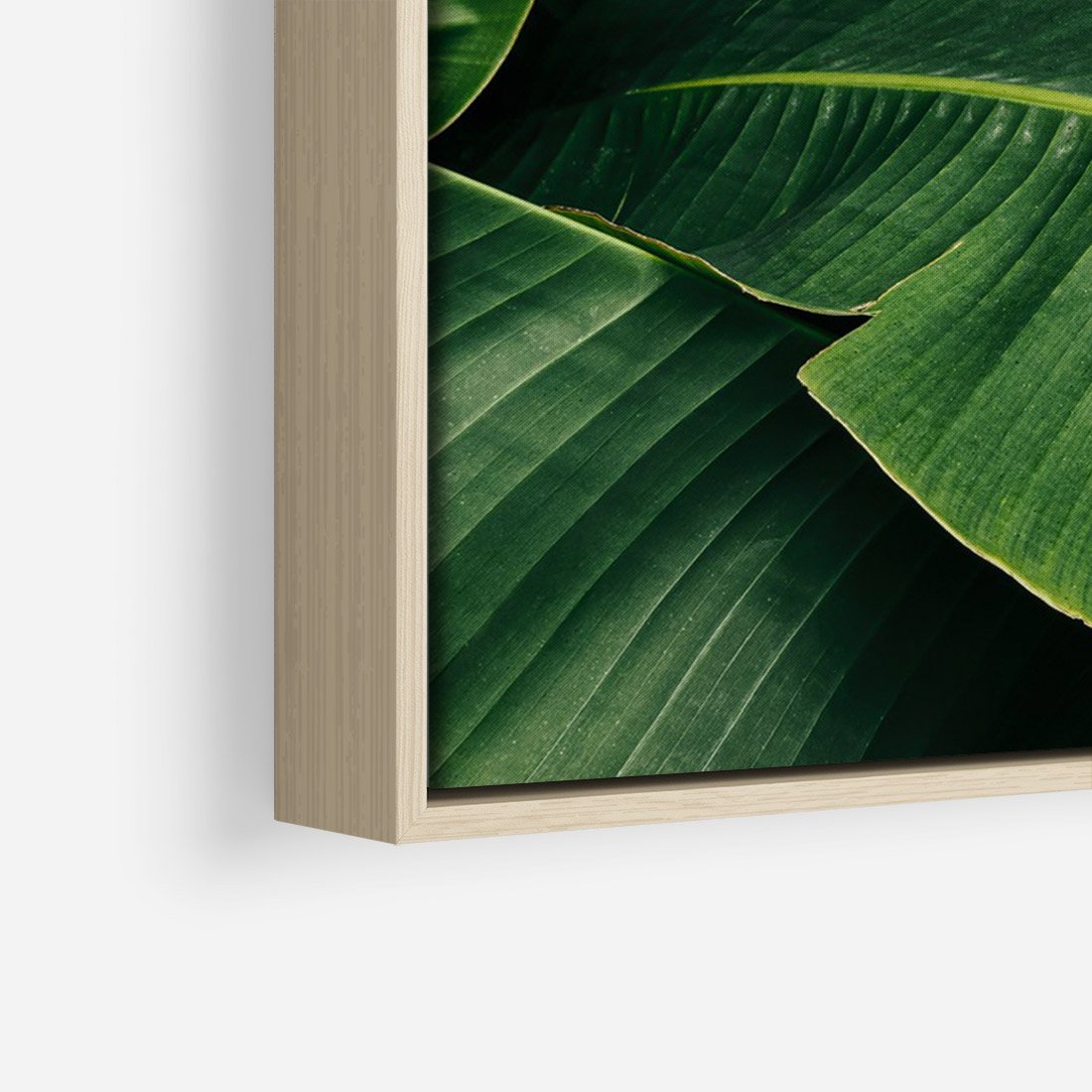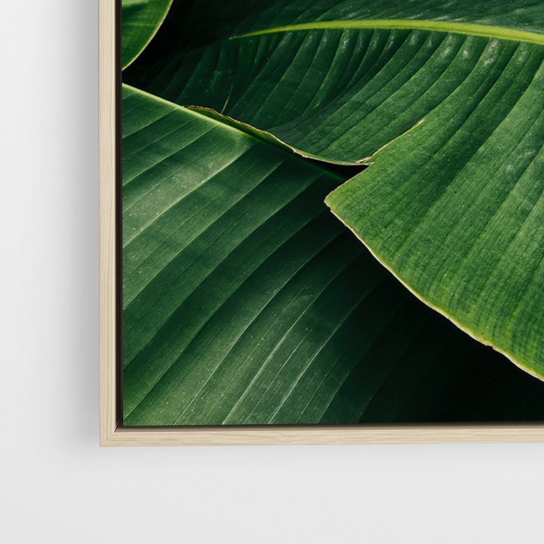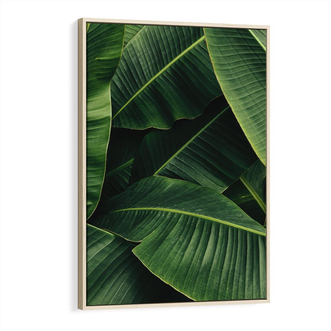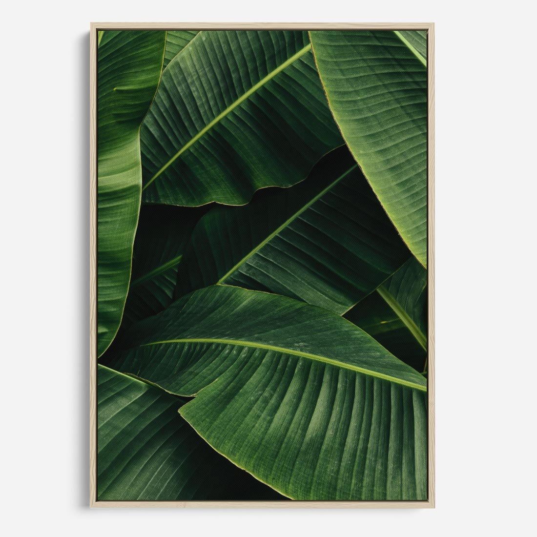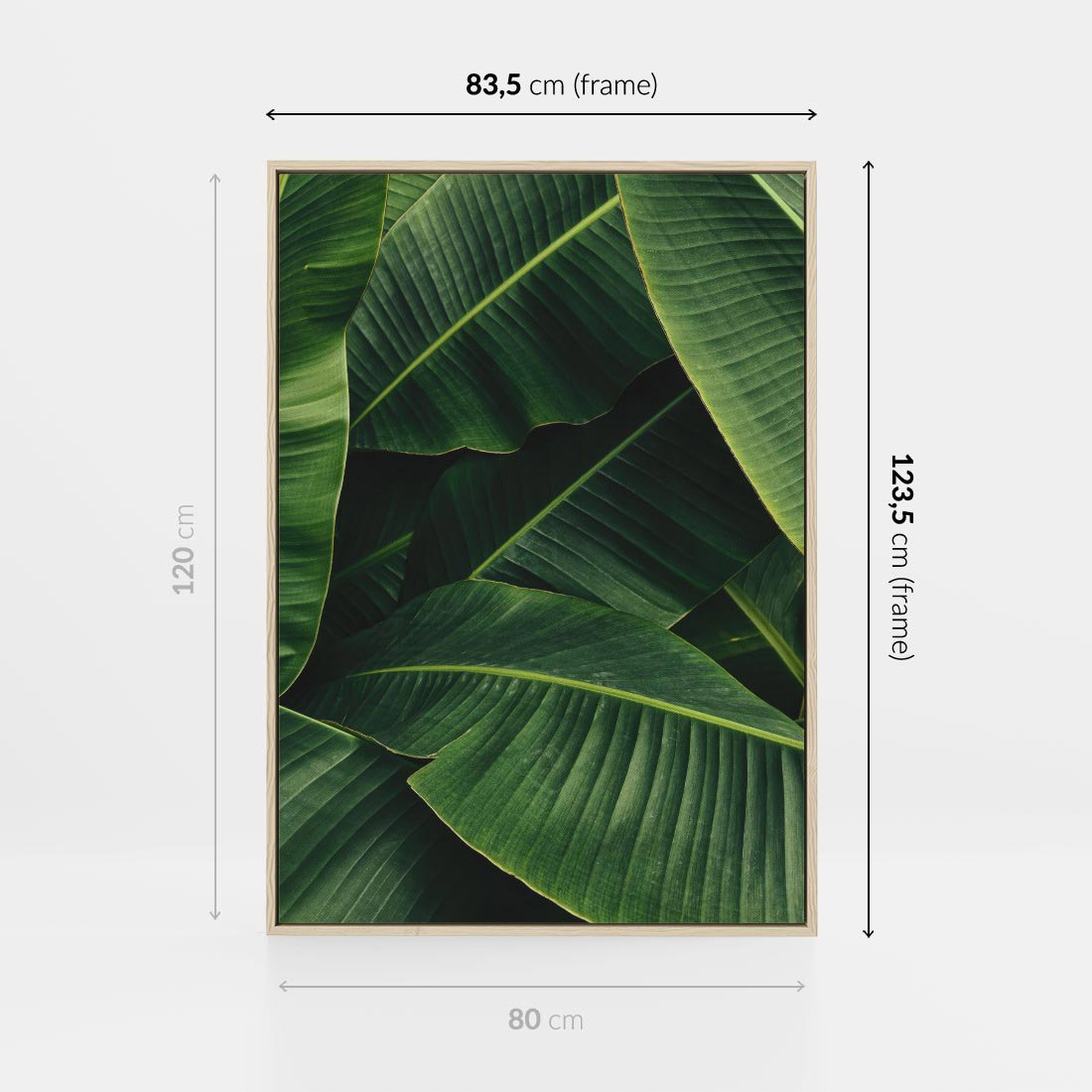 Obraz w ramie 80x120 - Zaklęta roślinna ekspresja - liście bananowca, gęsto ułożone - rama drewno