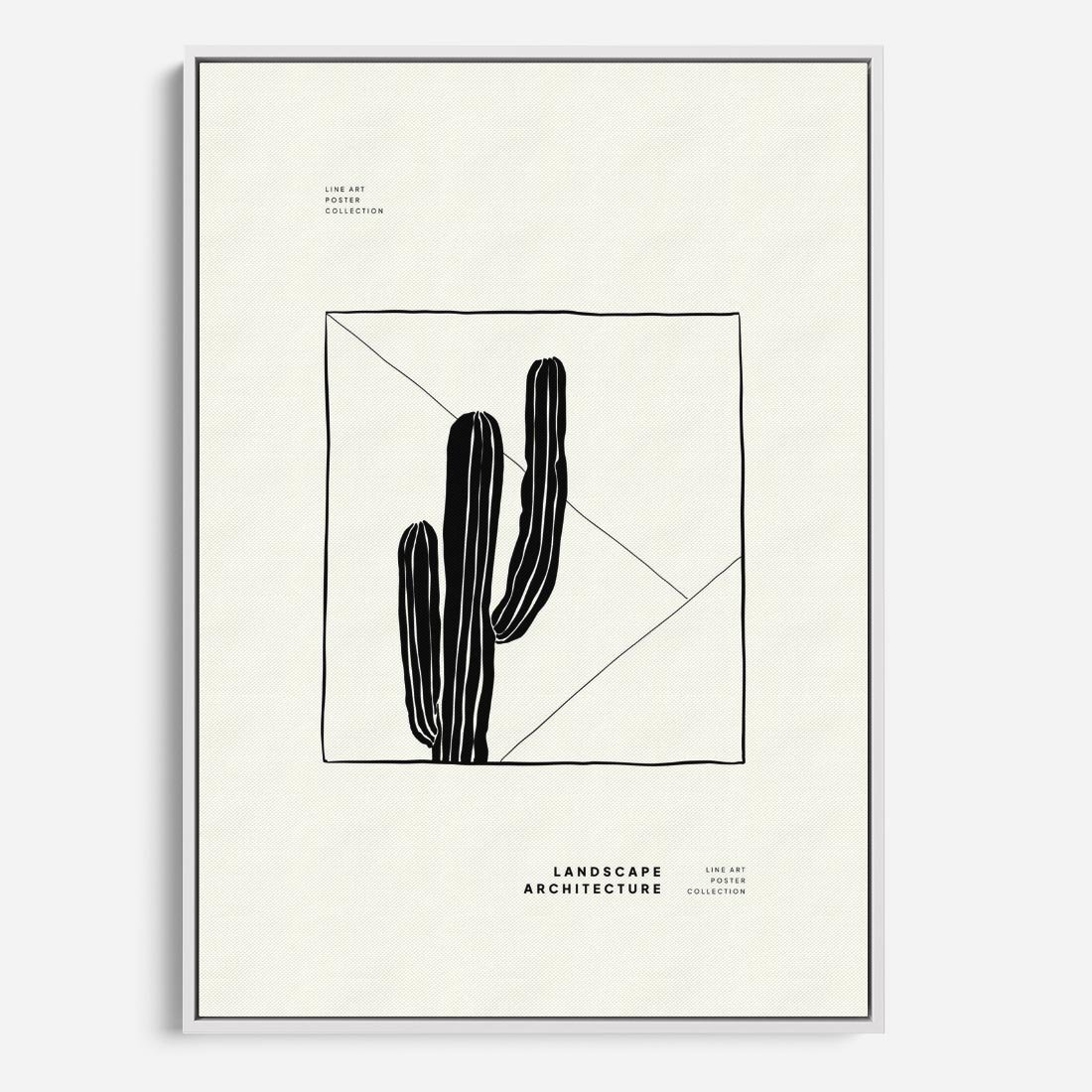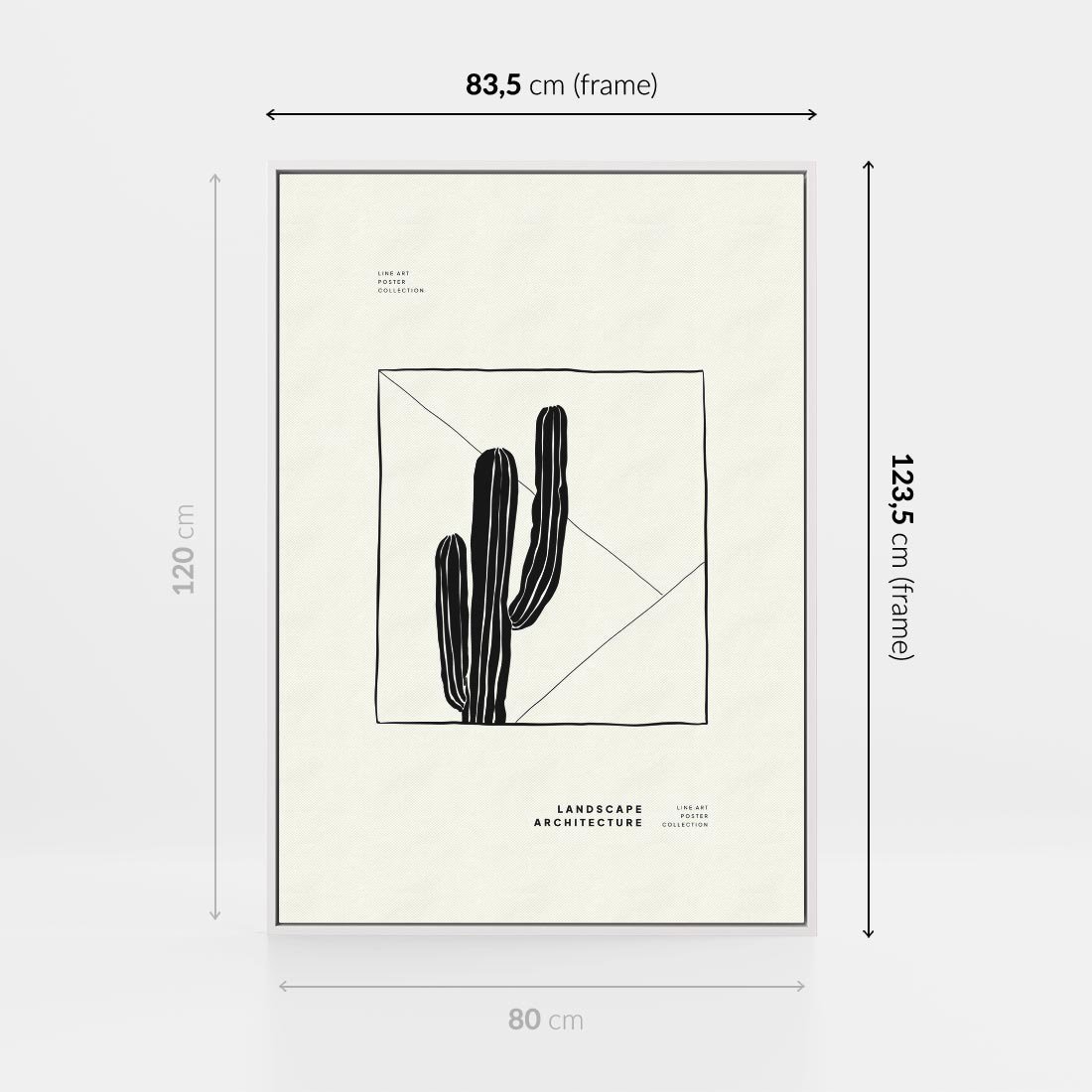 Ta nowoczesna sztuka łączy minimalistyczny styl z urokiem kaktusów, tworząc unikalny motyw roślinny. Delikatna typografia dopełnia kompozycję, przekazując spokojną i inspirującą esencję natury.