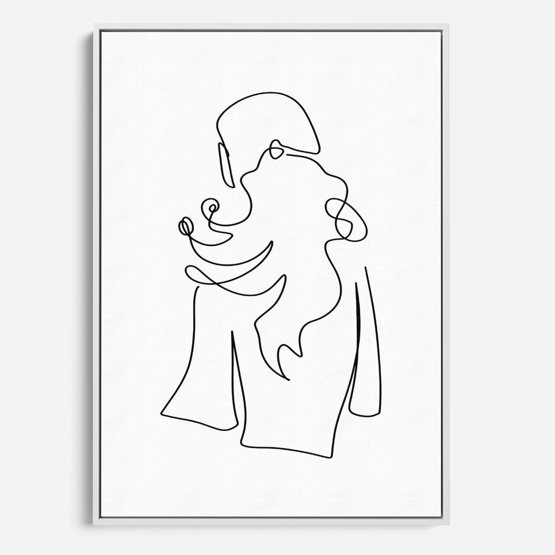 Obraz w ramie 80x120 - Zaklęte Linie - szkic kobiety, jedną linia - rama biała
