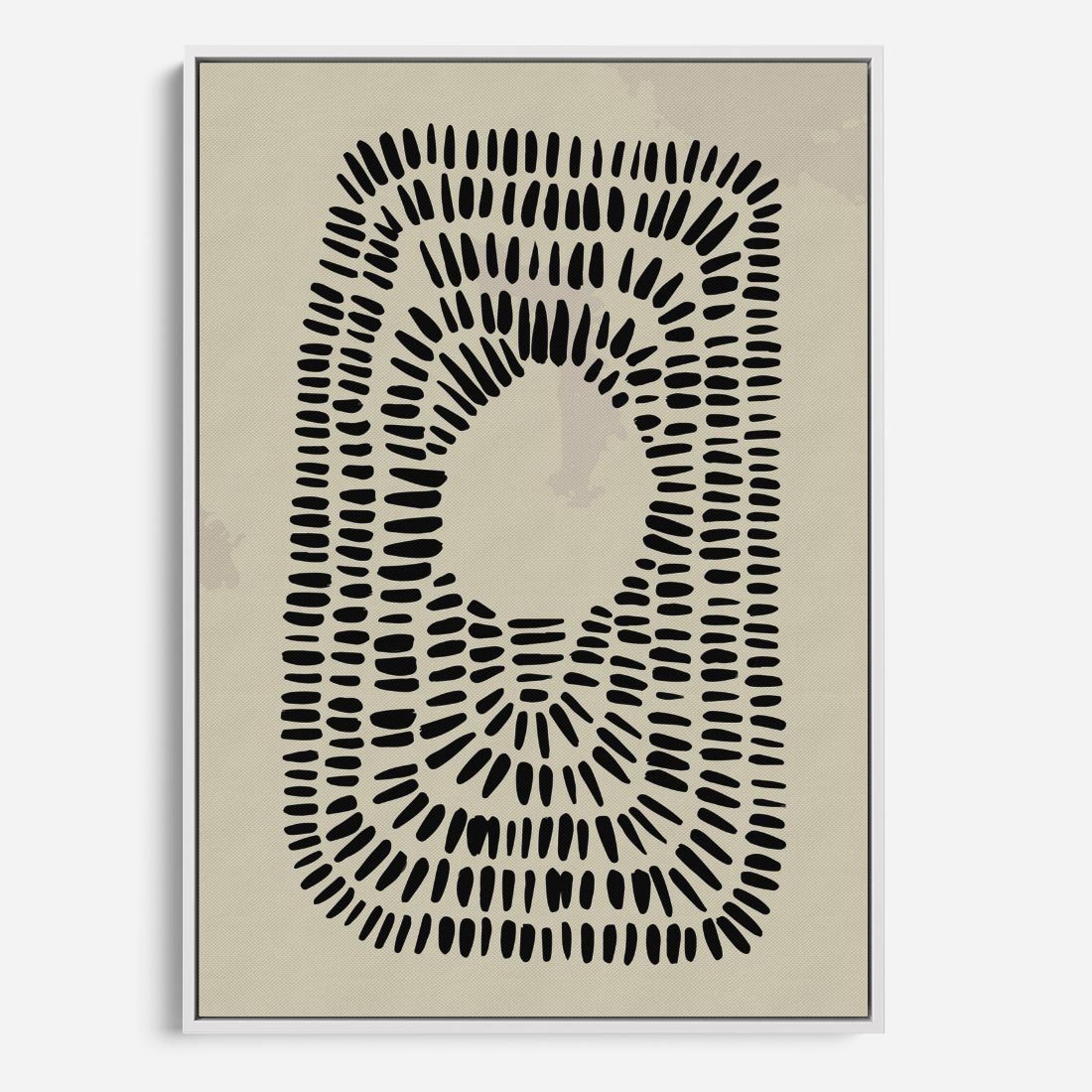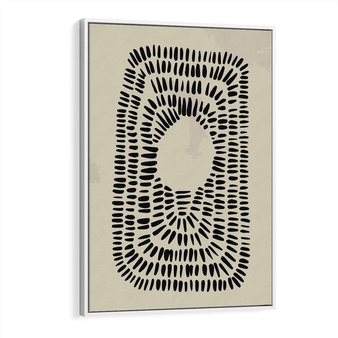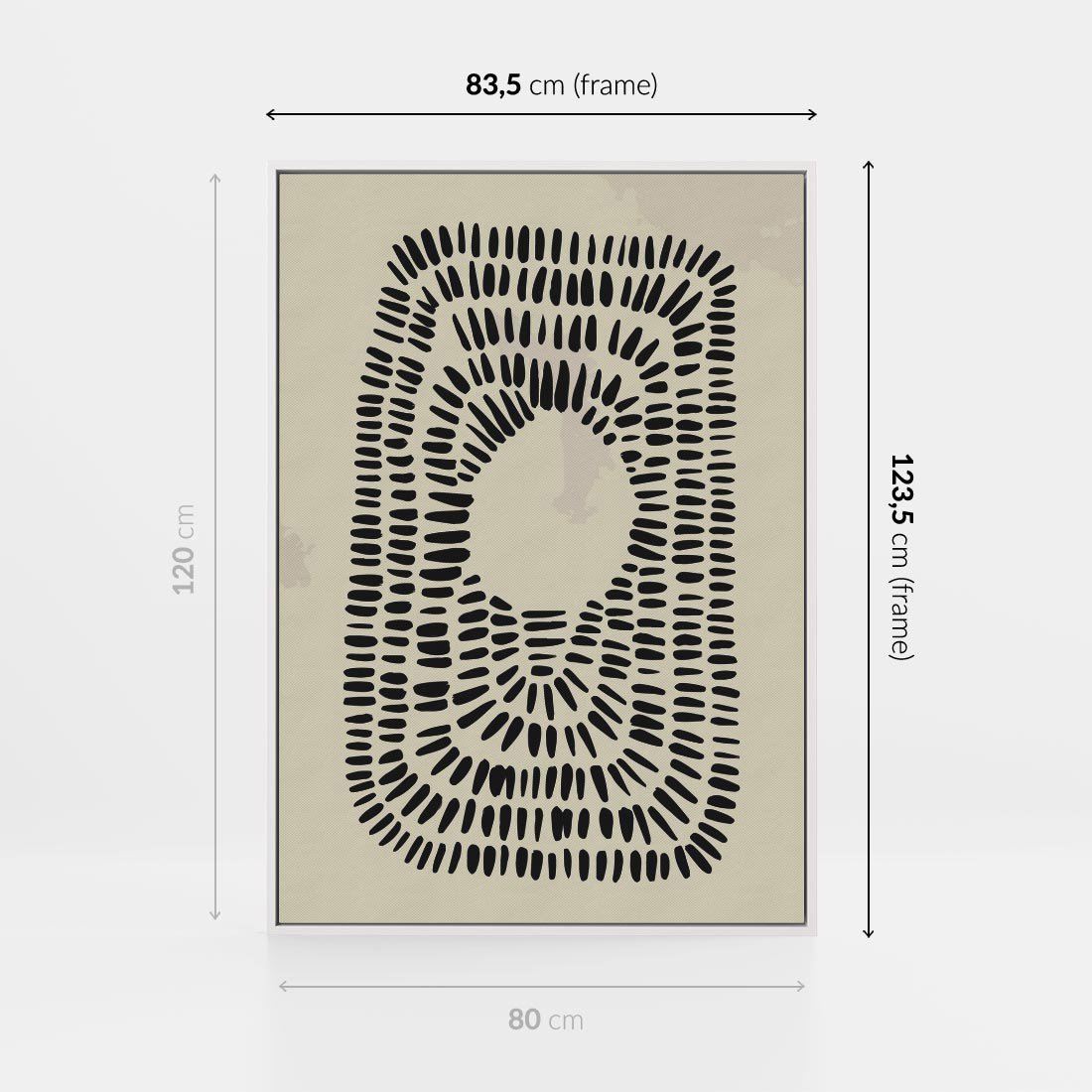 Obraz w ramie 80x120 - Zaklęte Wnętrza - boho plakat, czarne kropki kreski - rama biała