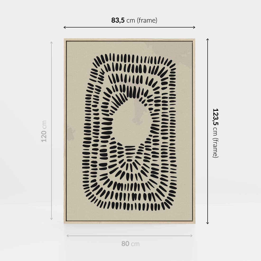 Obraz w ramie 80x120 - Zaklęte Wnętrza - boho plakat, czarne kropki kreski - rama drewno