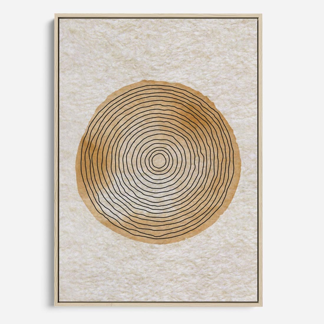 Obraz w ramie 80x120 - Zapisane w promieniach słońca - beżowe strukturalne tło, koła - rama drewno
