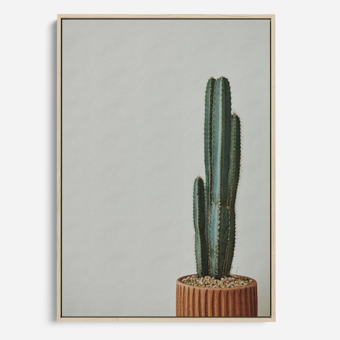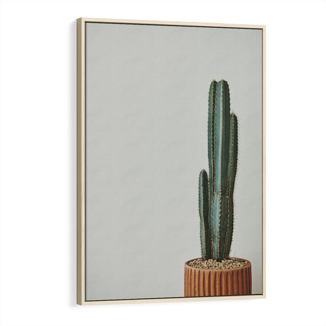 Obraz w ramie 80x120 - Zieleń i Subtelność - kaktusy, liście - rama drewno