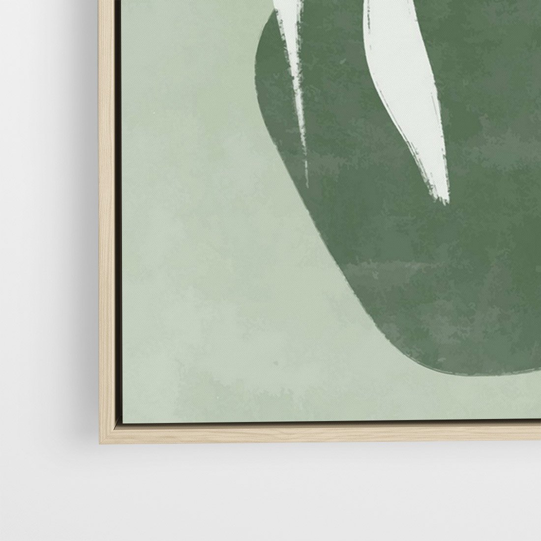 Zielona abstrakcja o zgaszonych odcieniach zieleni to minimalistyczny plakat idealny do wnętrz w stylu skandynawskim. Kwiat w doniczce dodaje subtelności i harmonii, tworząc spokojną i przyjemną atmosferę.