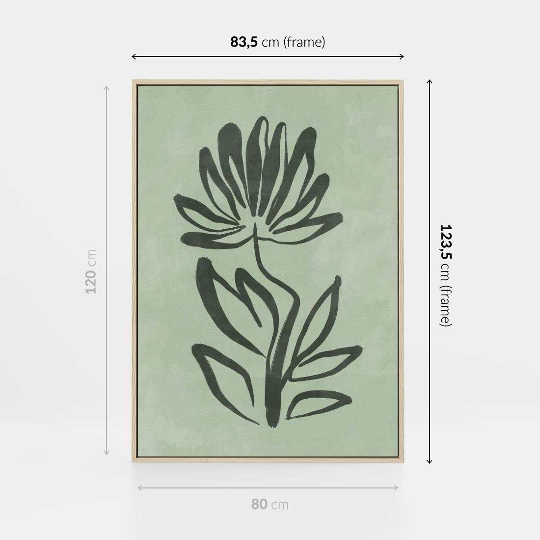 Zgaszona zieleń w abstrakcyjnej kompozycji tworzy minimalistyczny plakat, który doskonale wpisuje się w estetykę skandynawskiego designu. Spokojne odcienie i geometryczne formy nadają wnętrzu harmonię i subtelność.