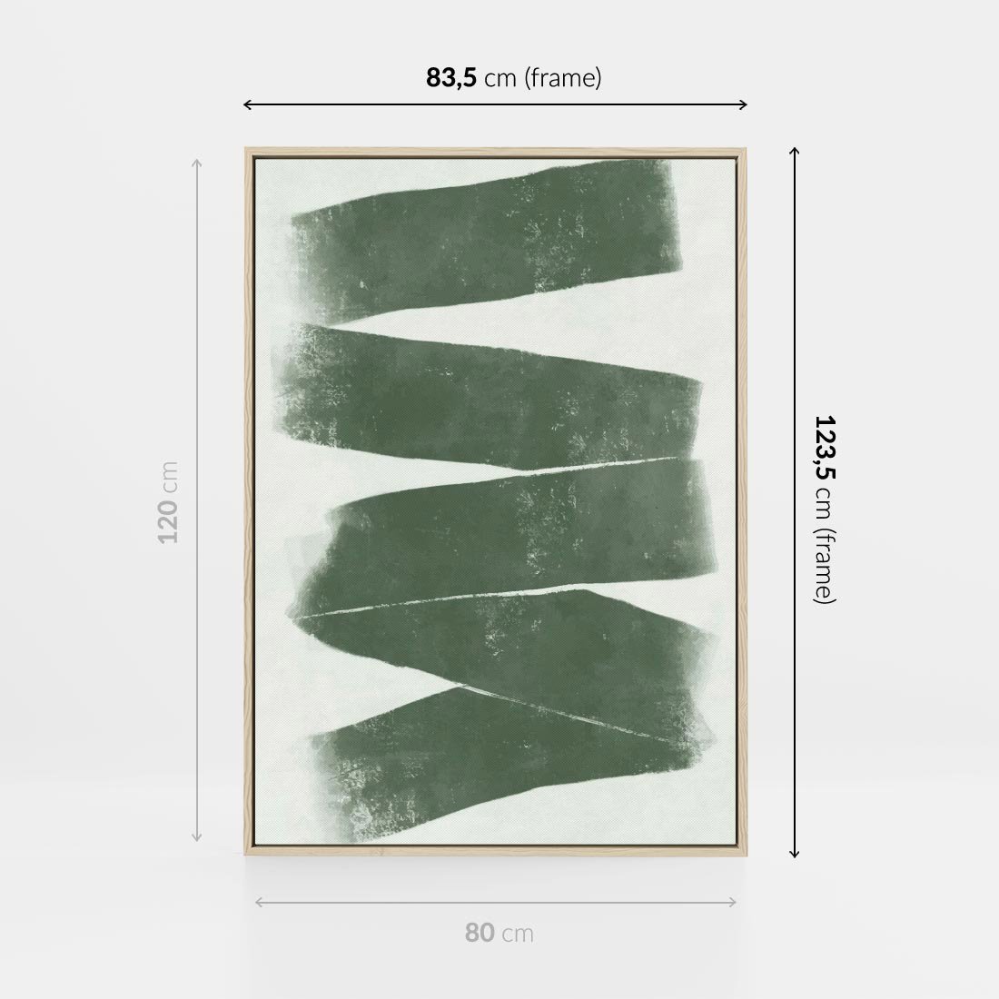Obraz w ramie 80x120 - Zielone Refleksje - abstrakcja, zgaszony zielony kolor - rama drewno