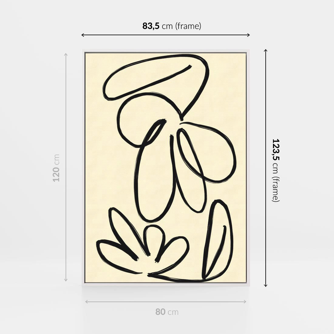 Nasza abstrakcyjna sztuka to delikatna kompozycja przypominająca kształtem kwiat. Wszystko to utrzymane jest w kontrastujących czerń i biel. To minimalizm w swojej najczystszej formie, gdzie subtelne linie tworzą elegancką i spokojną wizję, oddając hołd prostocie i pięknu.