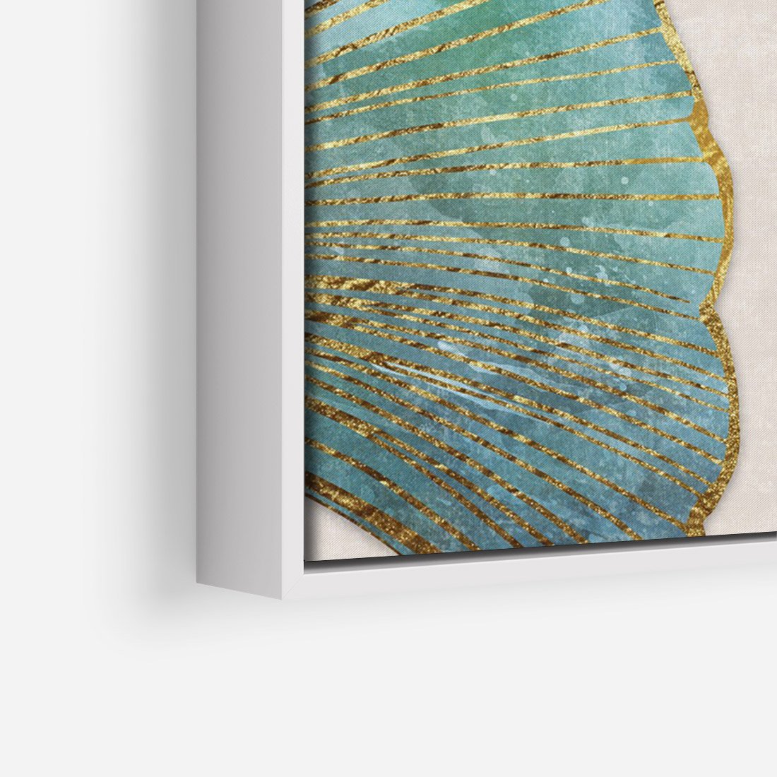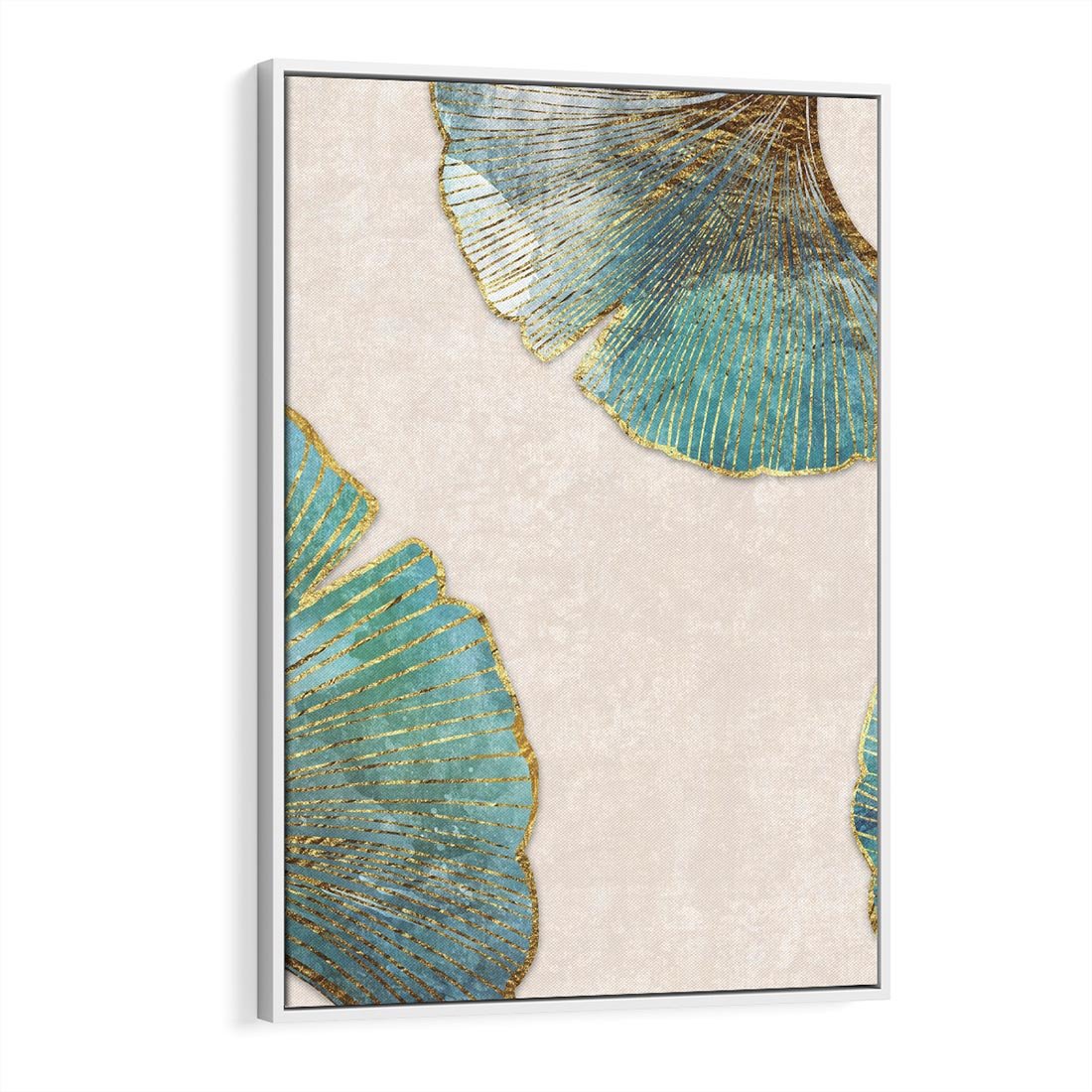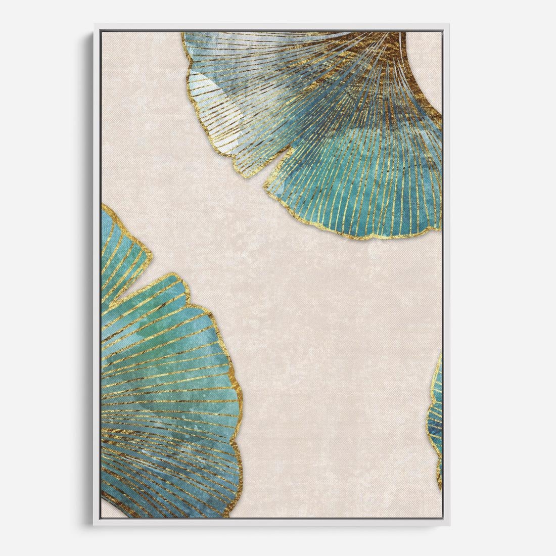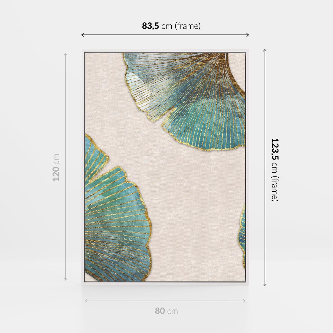 Obraz w ramie 80x120 - Złota Melodia Liści - złote, turkusowe liście miłorzębu - rama biała
