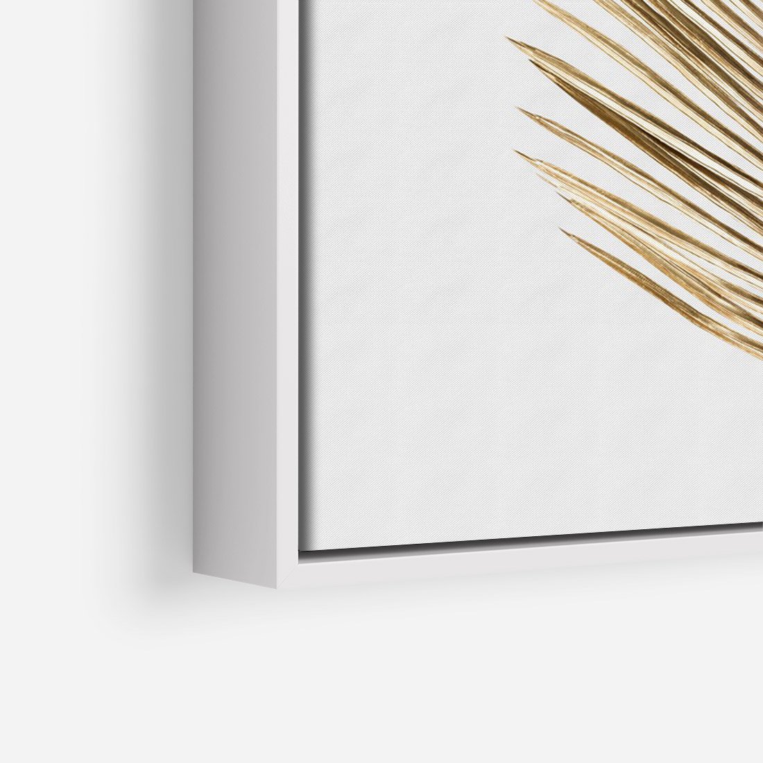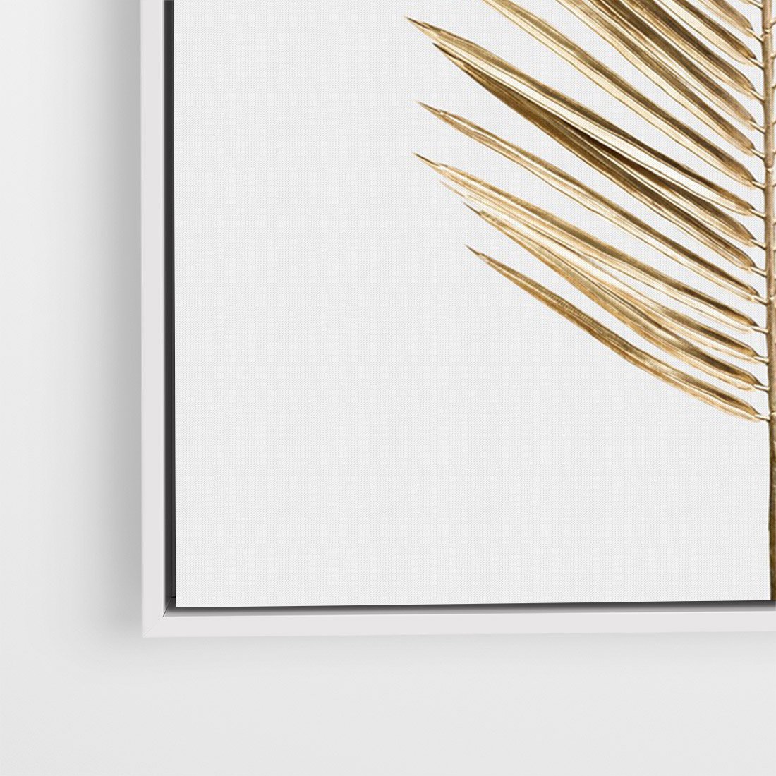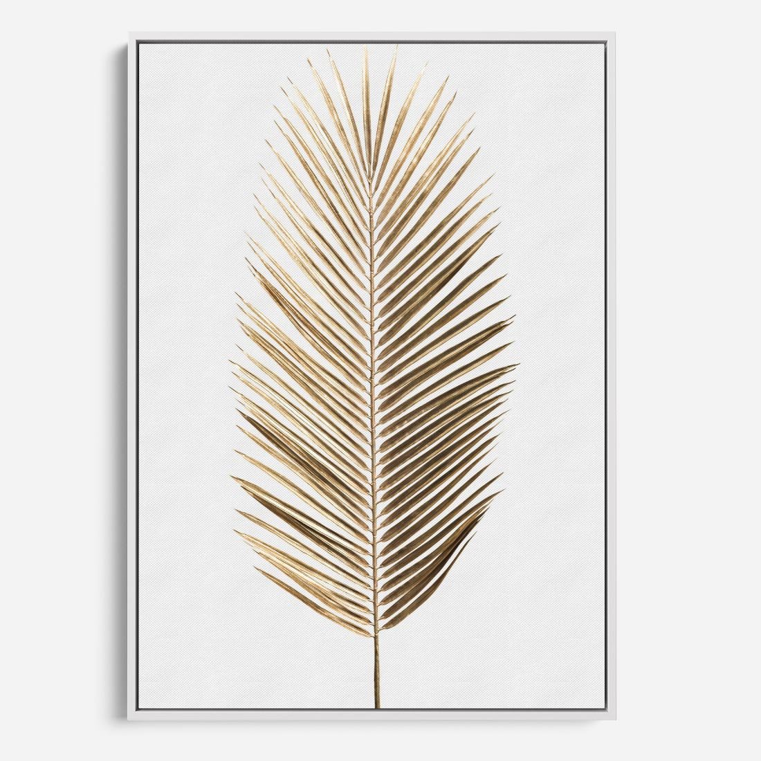 Obraz w ramie 80x120 - Złoty blask palmowego liścia - złota, palma - rama biała