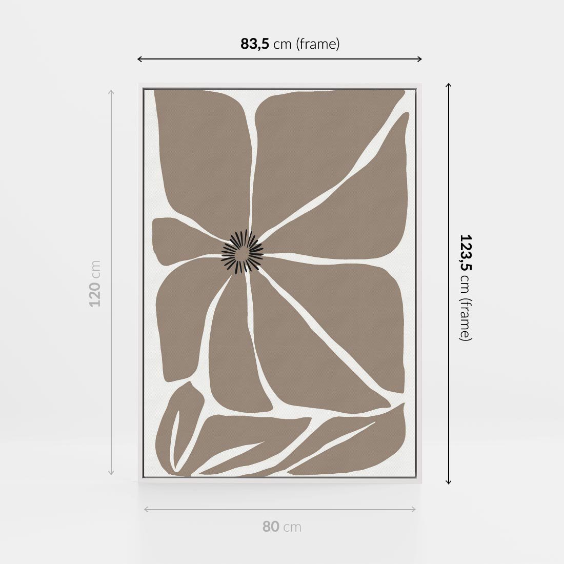 Obraz w ramie 80x120 - Złudne Zmysły - abstrakcyjny kwiat, beże i brązy - rama biała