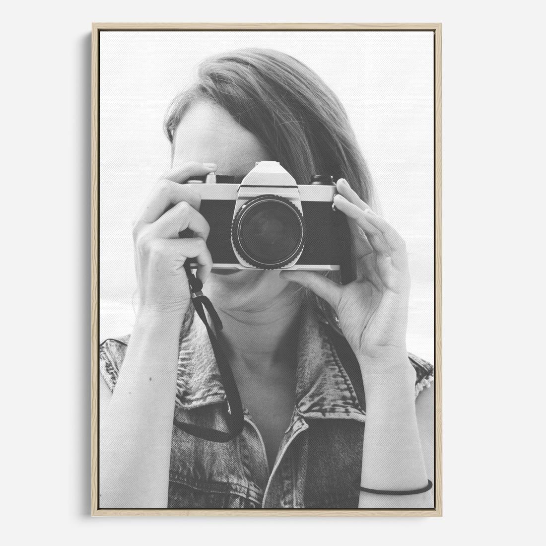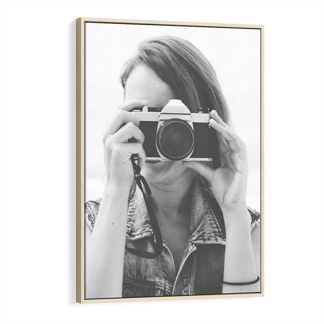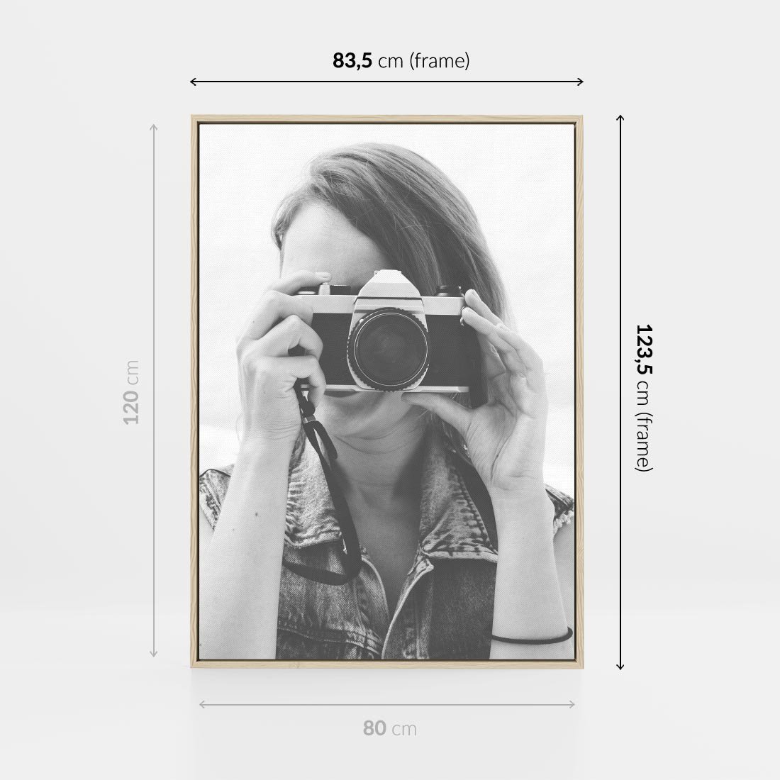 Obraz w ramie 80x120 - Zrób mi Zdjęcie - fotografia, kobieta z aparatem - rama drewno