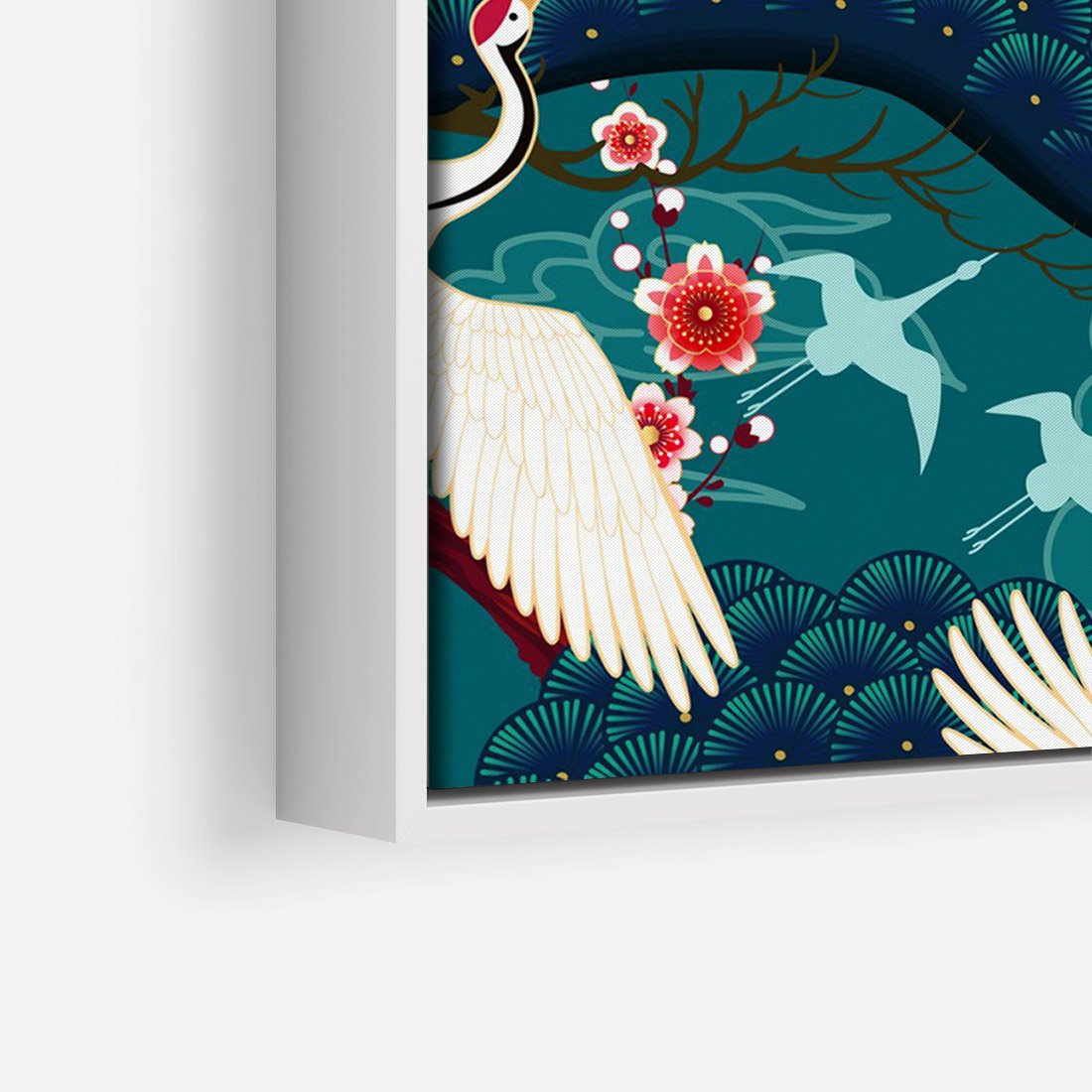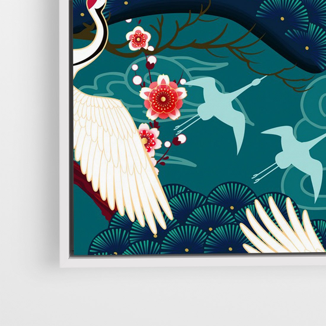 Obraz w ramie 80x120 - Żurawie Wachlarze - orientalne japońskie żurawie, grafika - rama biała