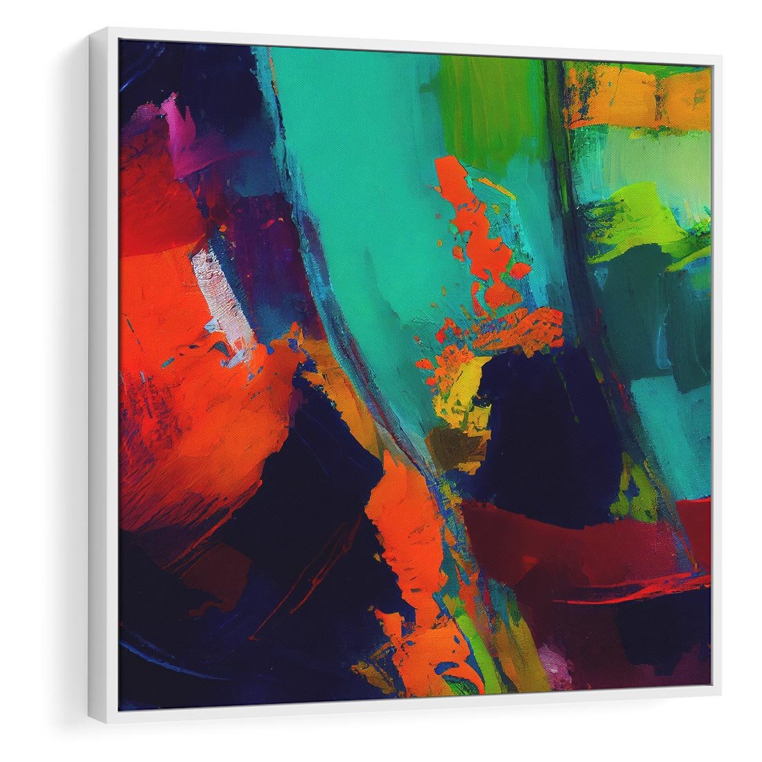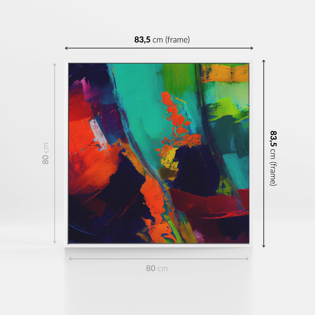 Obraz w ramie 80x80 - Abstrakcyjne wizje czasu - żywe radosne kolory, plamy kolory - rama biała