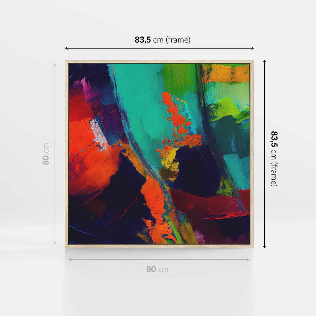 Obraz w ramie 80x80 - Abstrakcyjne wizje czasu - żywe radosne kolory, plamy kolory - rama drewno