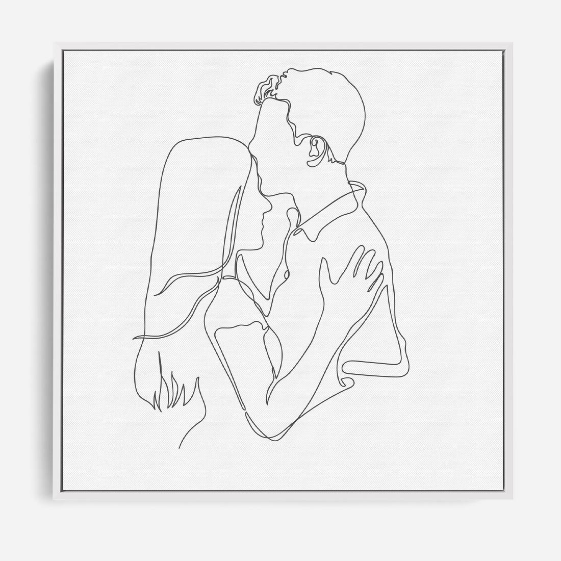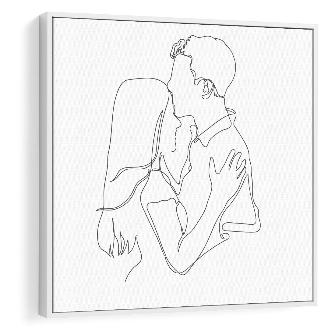 Delikatny szkic przedstawiający parę zakochanych - kobietę i mężczyznę, narysowaną jedną ciągłą linią. Sztuka oddaje piękno prostoty i miłości.