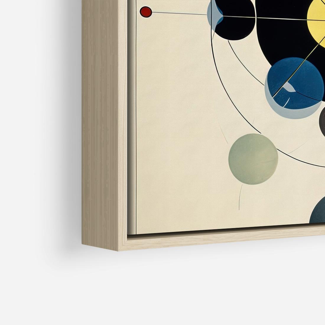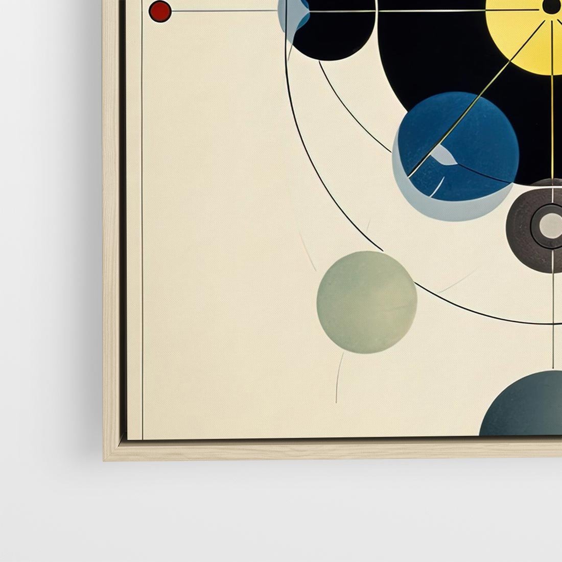 Ta abstrakcyjna geometryczna kompozycja zachwyca wyrazistymi kołami, dynamicznymi liniami i żywymi kolorami, nawiązującymi do charakterystycznego stylu Wassily'ego Kandinsky'ego. To wizualna podróż w świat abstrakcji i emocji.