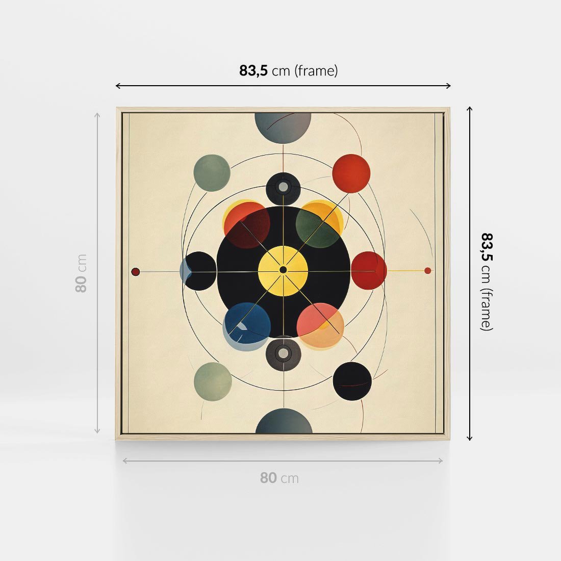 Obraz w ramie 80x80 - Bezgraniczny Taniec Światła - abstrakcyjna geometryczna kompozycja, koła linie - rama drewno