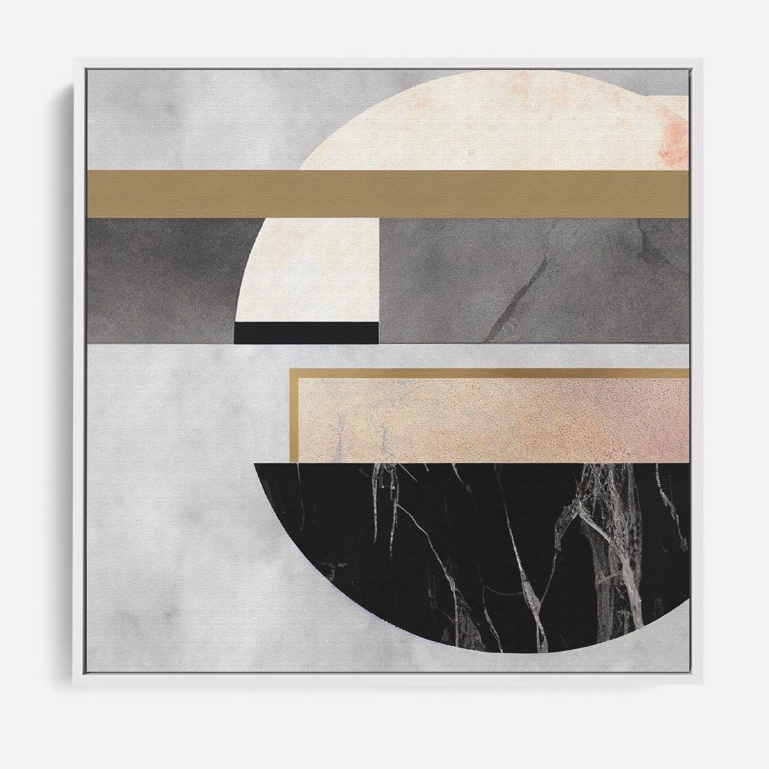 Unikalny obraz, który w nowoczesny sposób łączy geometrię, koła i tekstury szarego marmuru. Subtelne pastele w połączeniu z białymi i czarnymi formami tworzą harmonijną kompozycję, emanującą elegancją i spokojem. To wyjątkowe dzieło sztuki dodaje przestrzeni nowoczesności, zachęcając do odkrywania estetycznych detali.