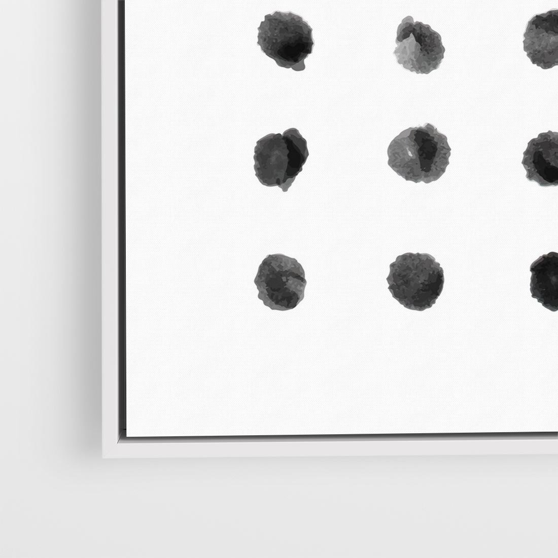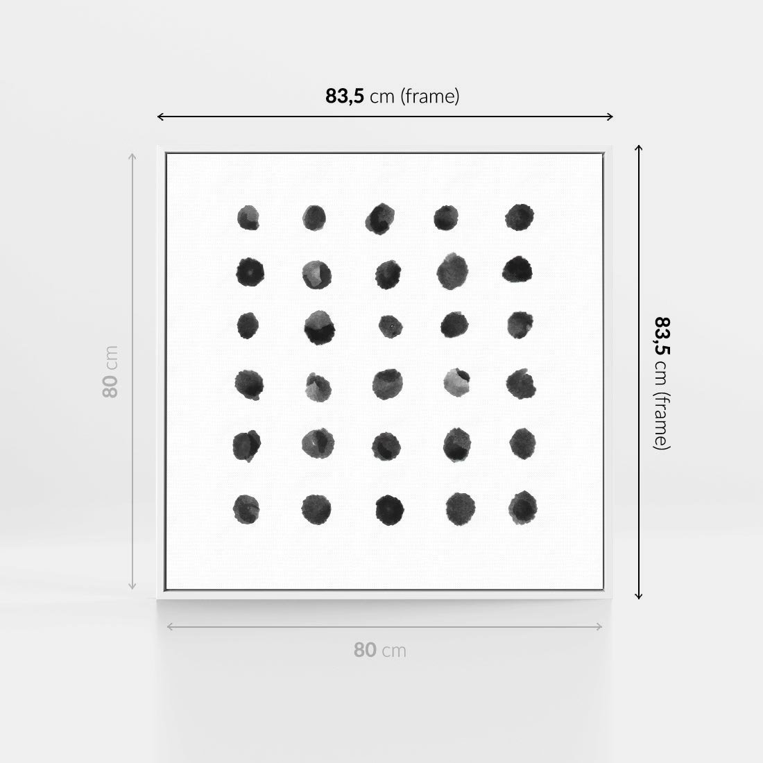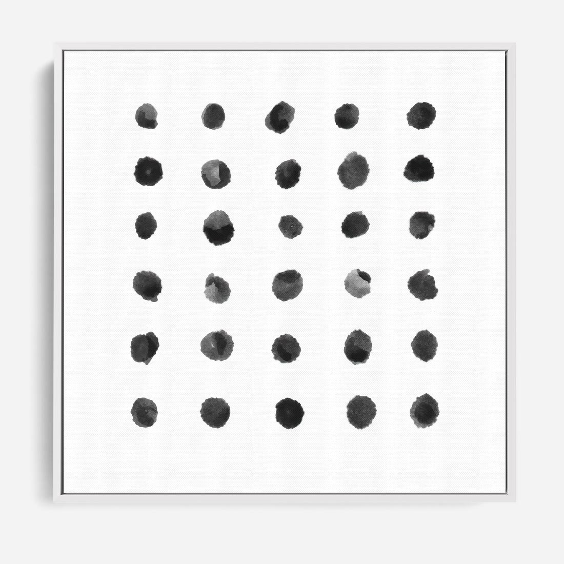 Obraz w ramie 80x80 - Boho Sztuka Wolości - minimalistyczny plakat, czarne kropki na białymtle - rama biała