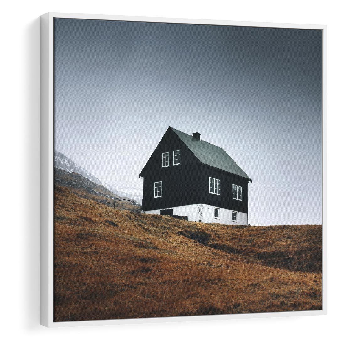 Obraz w ramie 80x80 - Ciepło i Przytulność - skandynawski, domek - rama biała