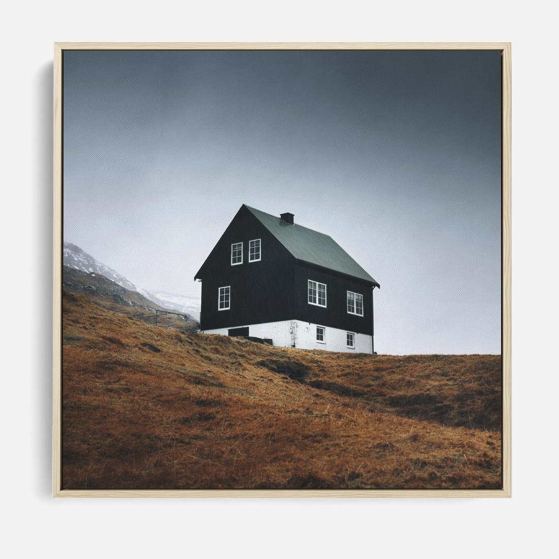 Obraz w ramie 80x80 - Ciepło i Przytulność - skandynawski, domek - rama drewno