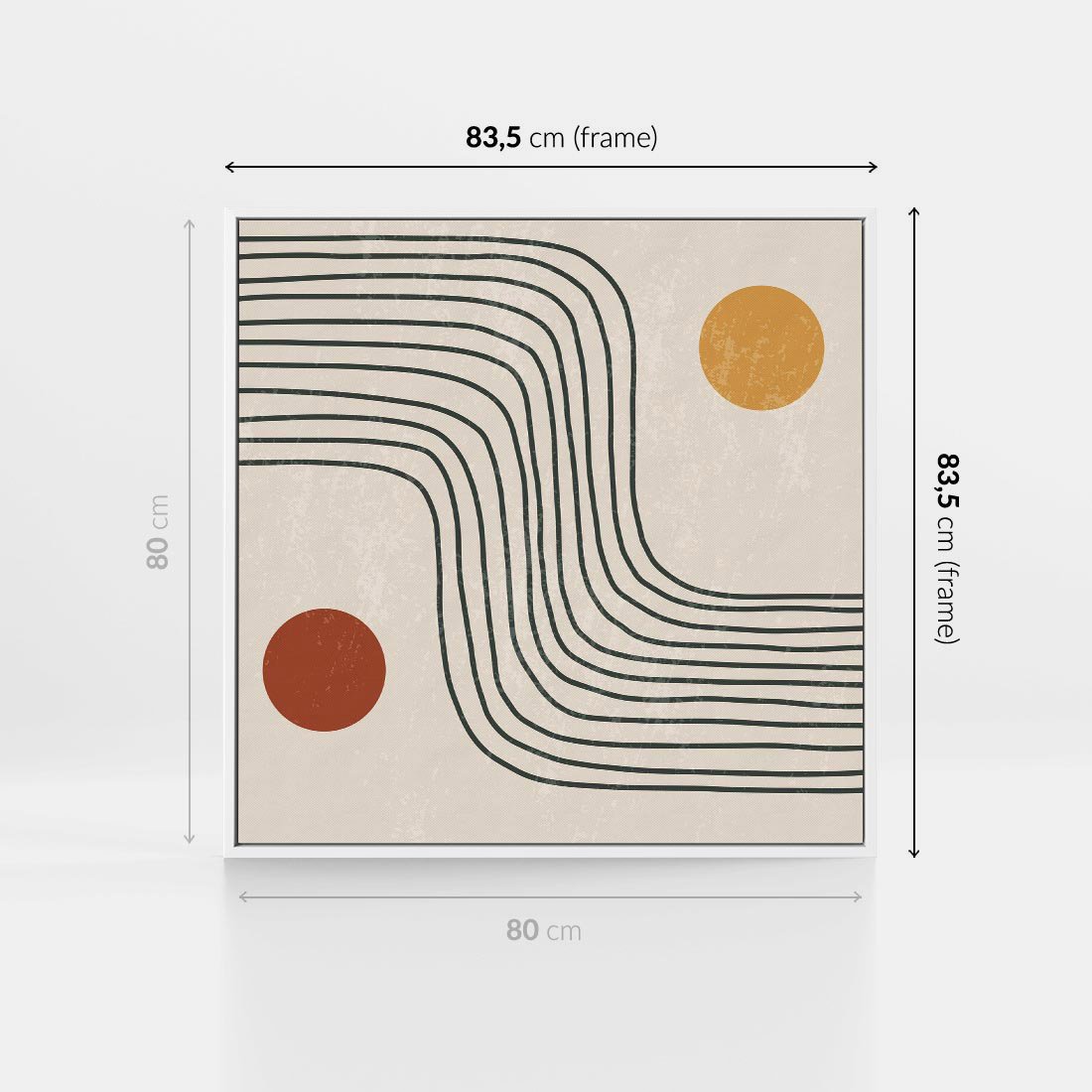 Nasza abstrakcyjna sztuka łączy boho kształty z minimalizmem, idealnie pasującymi do nowoczesnych wnętrz. To twórcze połączenie wprowadza do Twojej przestrzeni zarówno artystyczną ekspresję, jak i spokojną harmonię, tworząc wyjątkowy i unikalny wygląd.