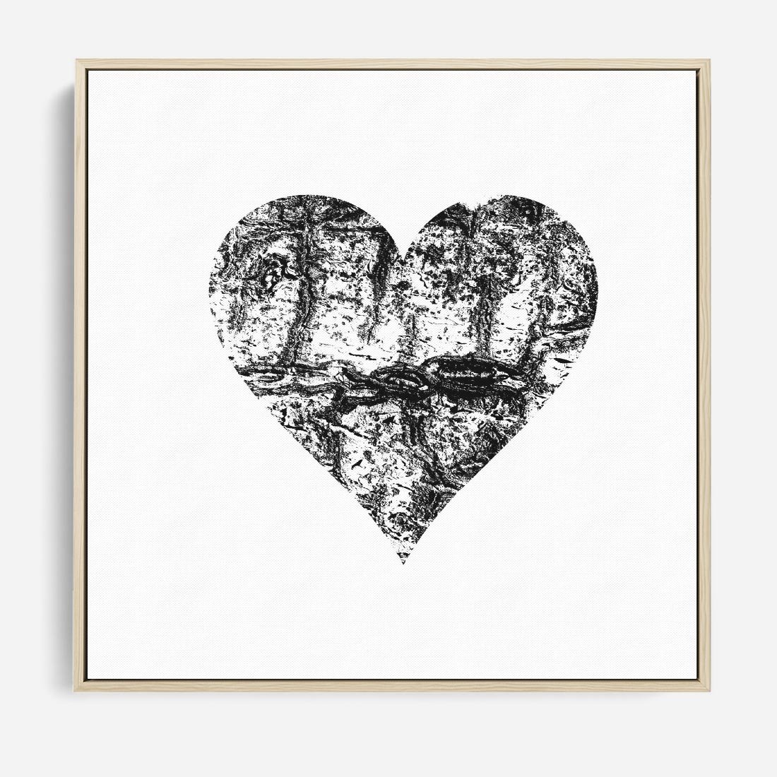 Obraz w ramie 80x80 - Drzewo Serca - czarne serce, tekstura jak kora drzewa - rama drewno
